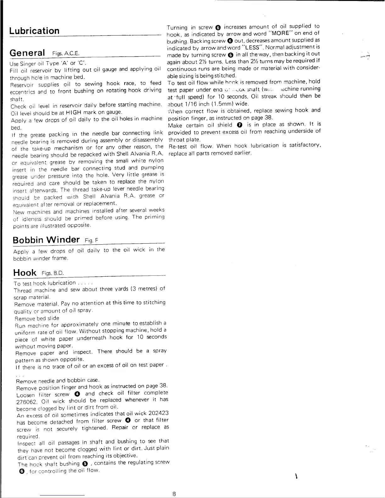Singer 660A202 - Lubrication Guide; General Lubrication Points; Hook Lubrication Testing