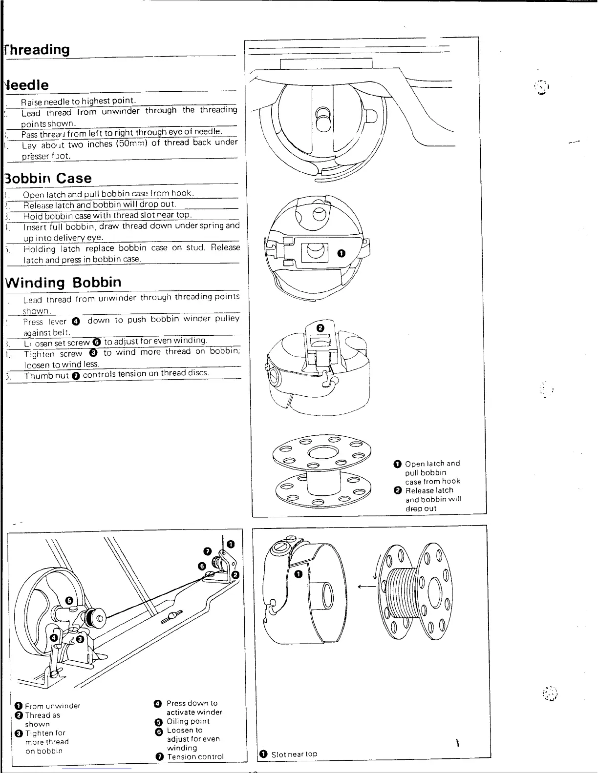 Singer 660A202 - Threading and Bobbin Operations; Needle Threading; Bobbin Handling and Winding