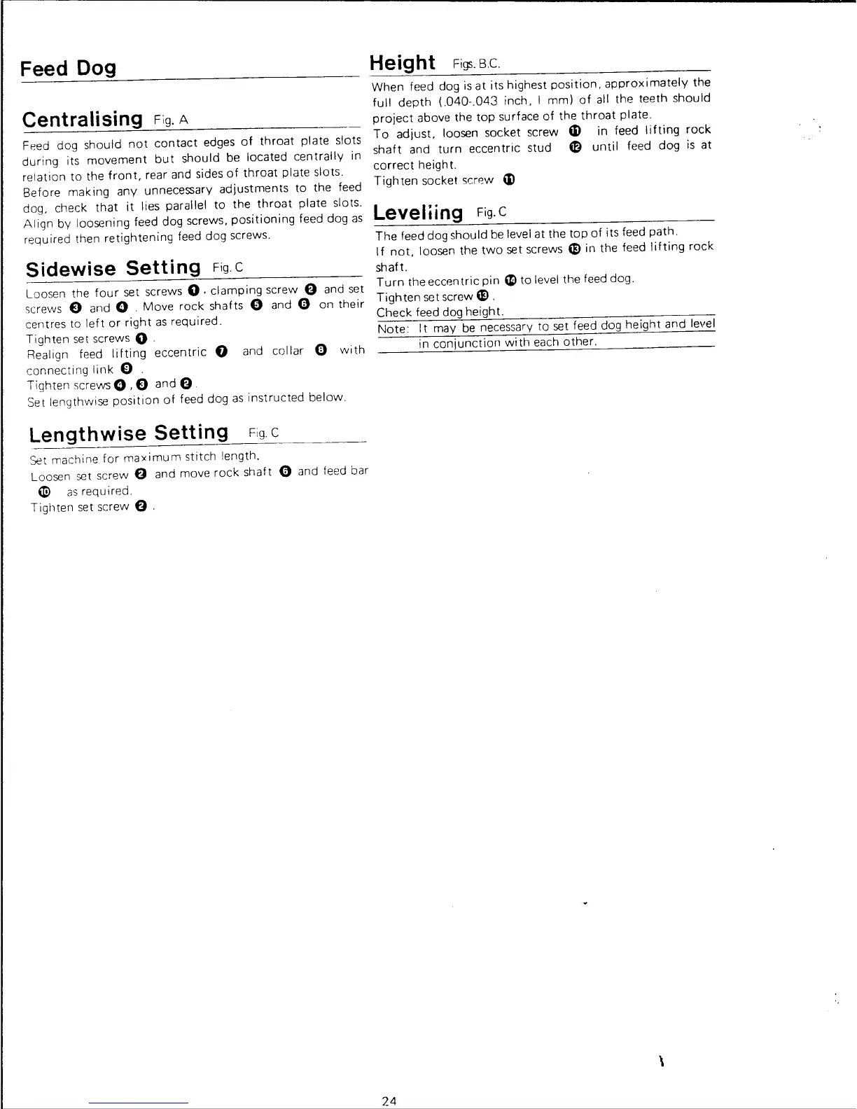 Singer 660A202 - Feed Dog Adjustments; Feed Dog Alignment and Height