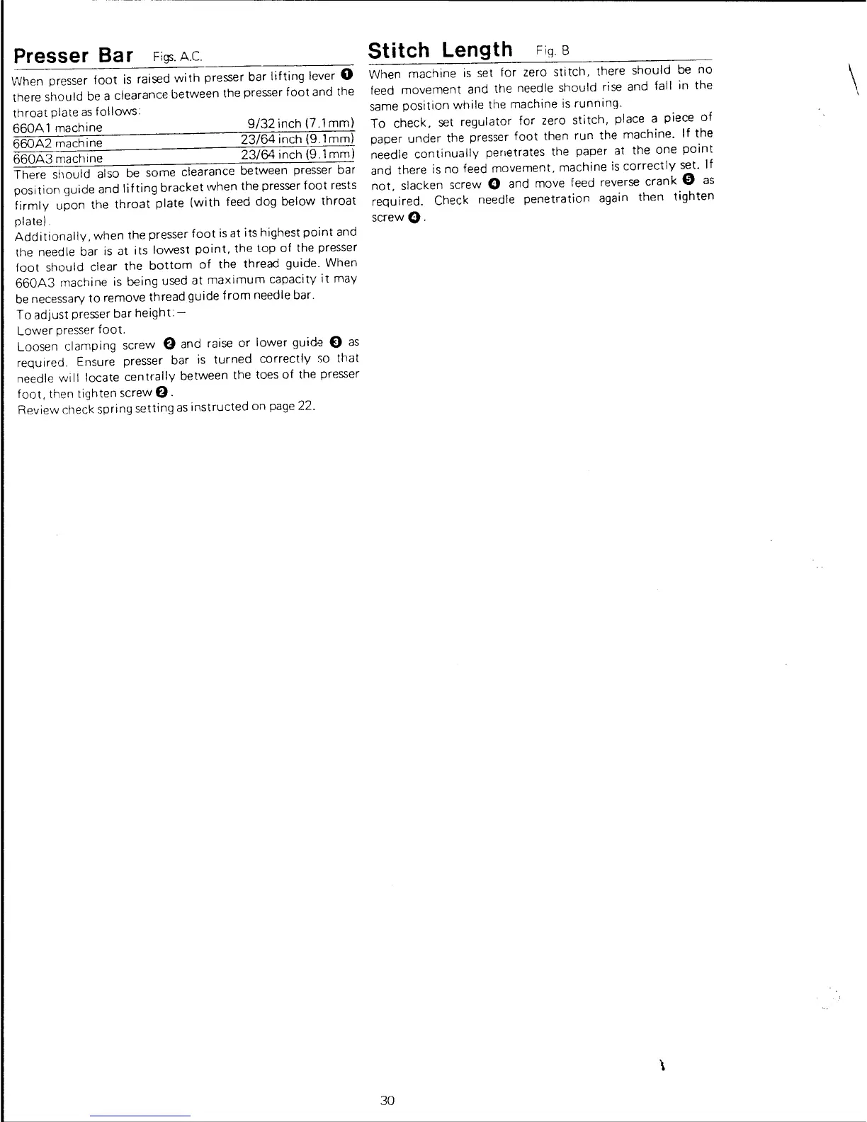 Singer 660A202 - Presser Bar and Stitch Length Checks; Presser Bar Clearances; Zero Stitch Length Verification