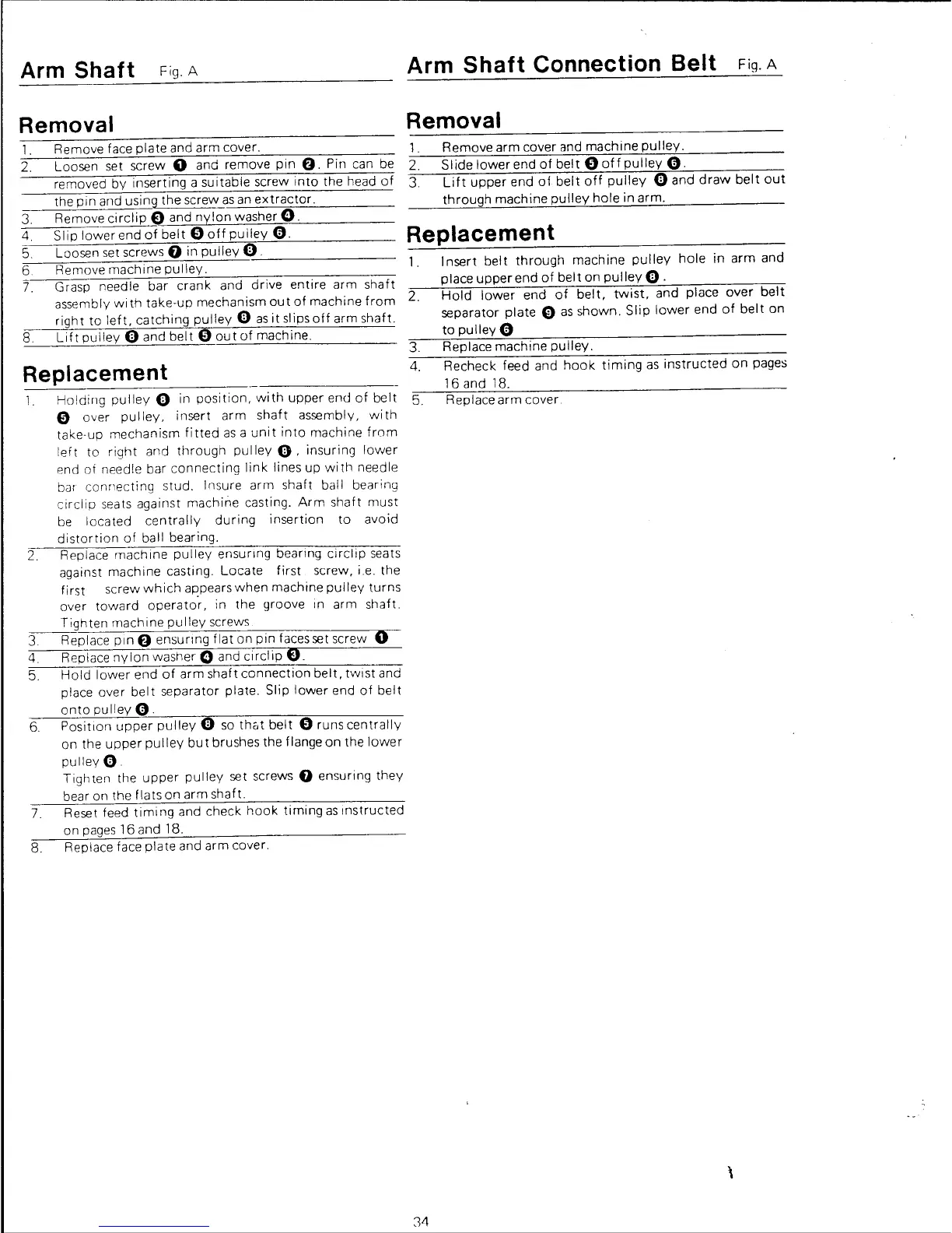 Singer 660A202 - Arm Shaft and Connection Belt; Arm Shaft Replacement; Connection Belt Replacement