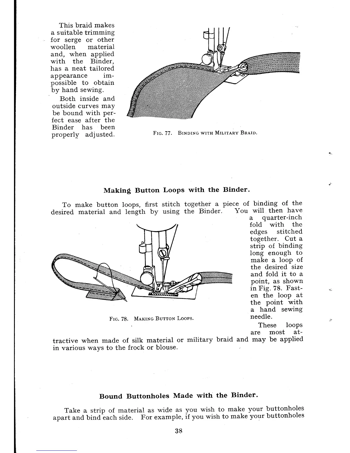 Singer 66k - Binder Attachment: Button Loops and Buttonholes; Making Button Loops with Binder; Bound Buttonholes with Binder