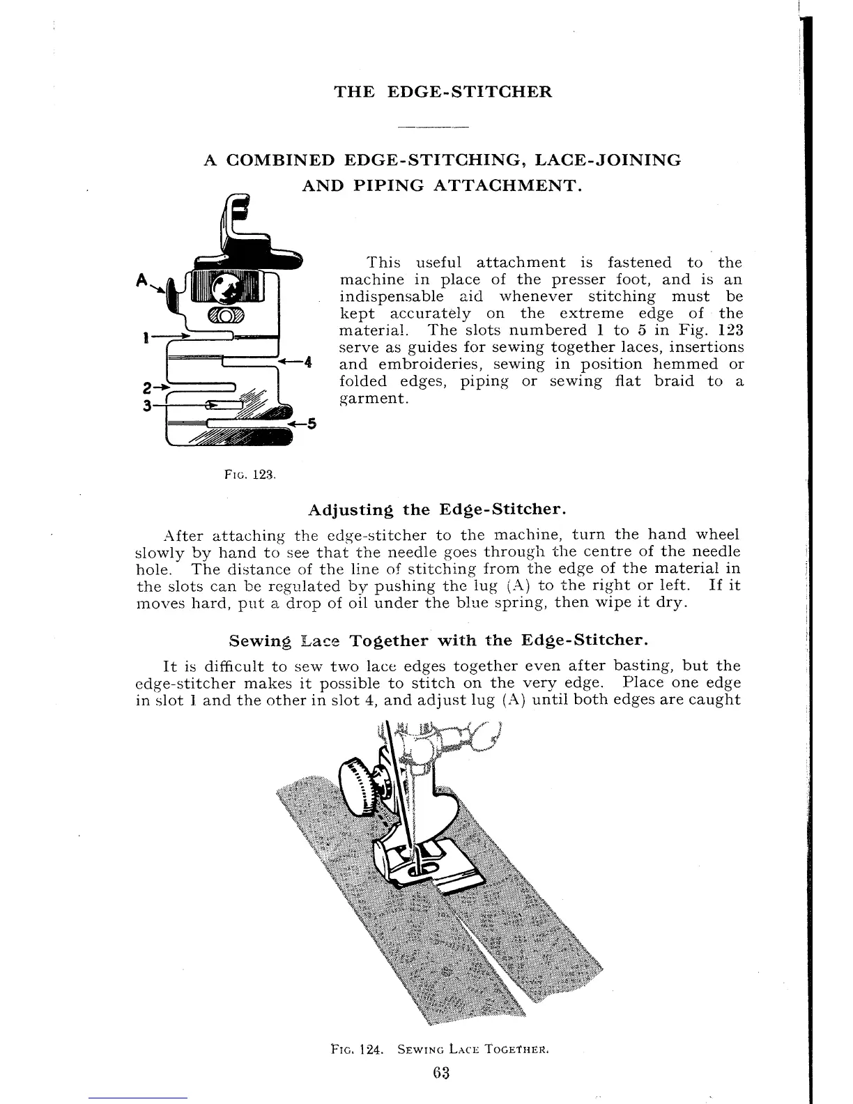 Singer 66k - The Edge-Stitcher Attachment; Adjusting the Edge-Stitcher; Sewing Lace Edges with Edge-Stitcher