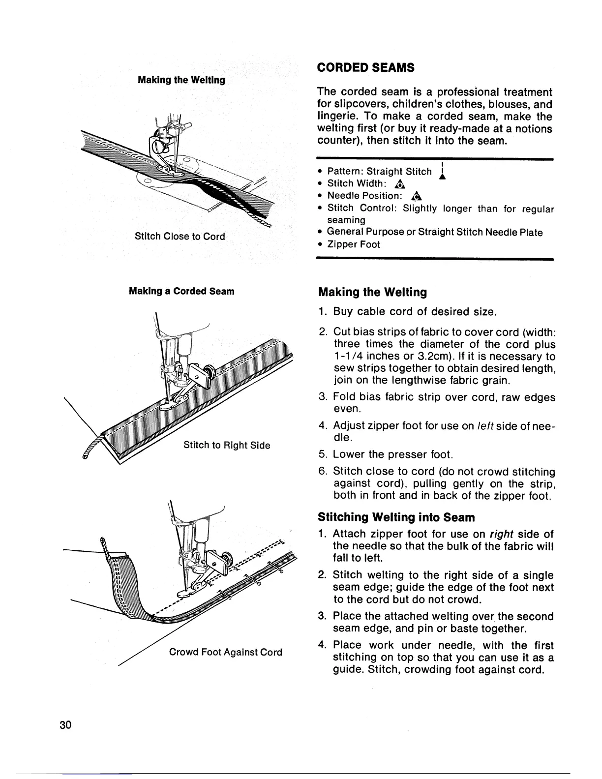 Singer 6704 - Corded Seams; Making the Welting; Stitching Welting into Seam