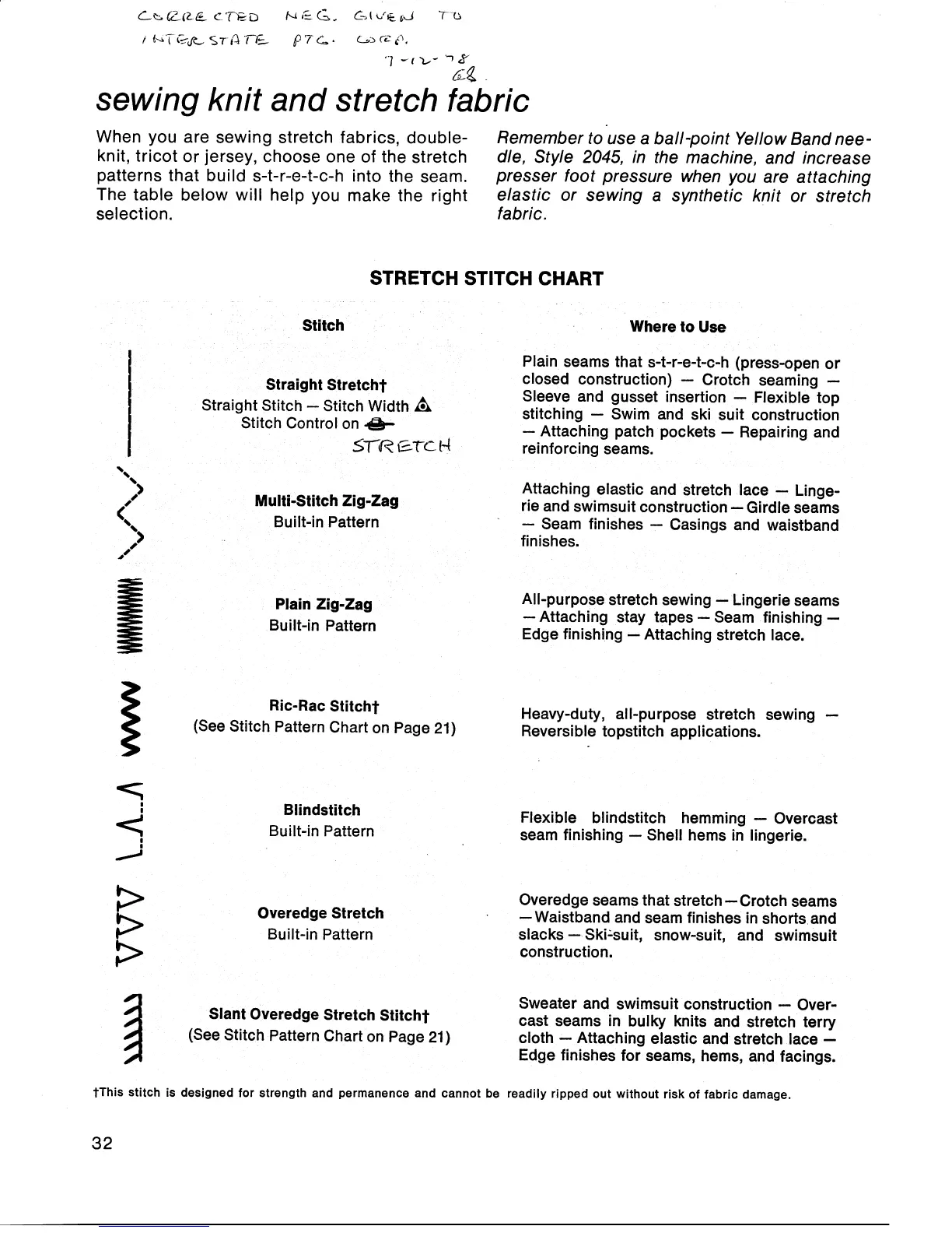 Singer 6704 - Sewing Knit and Stretch Fabric; Stretch Stitch Chart