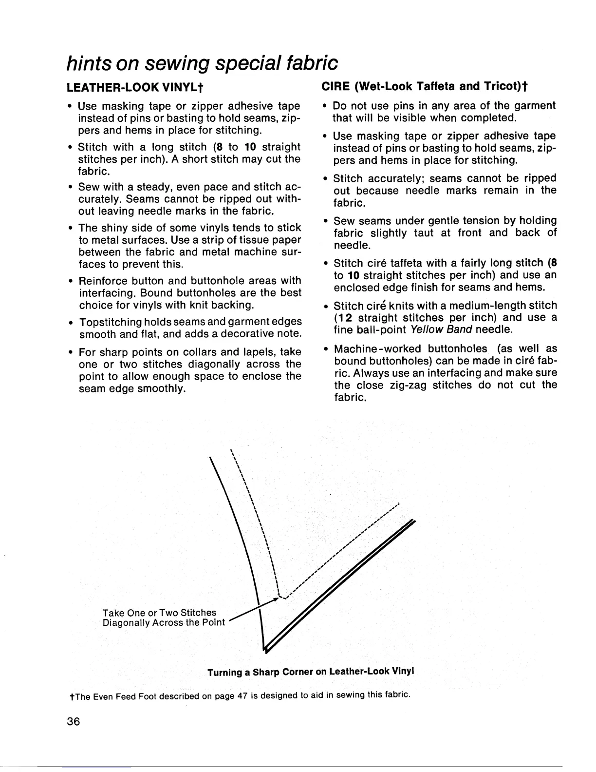 Singer 6704 - Hints on Sewing Special Fabric; Leather-Look Vinyl; Cire (Wet-Look Taffeta and Tricot)