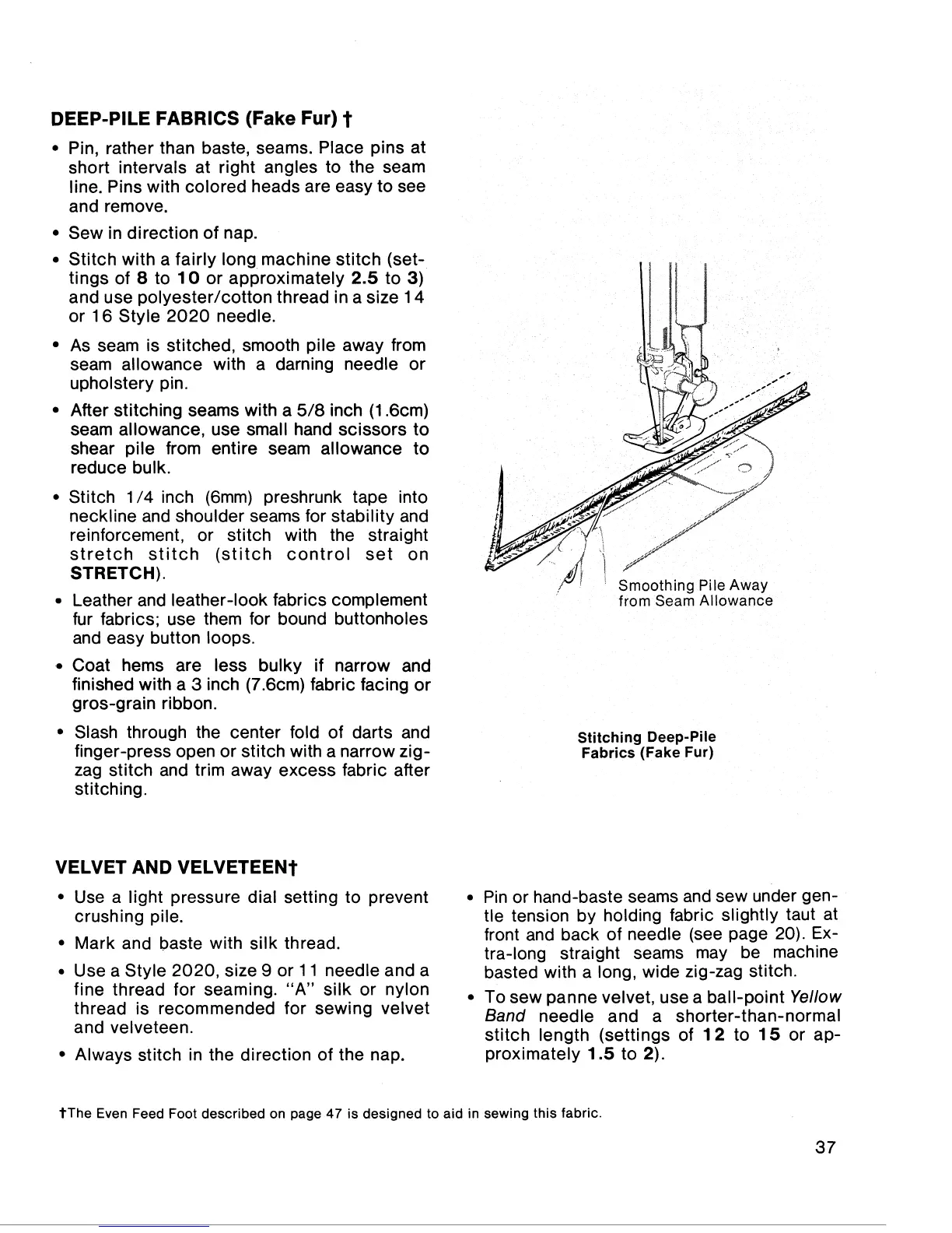 Singer 6704 - Deep-Pile Fabrics (Fake Fur); Velvet and Velveteen