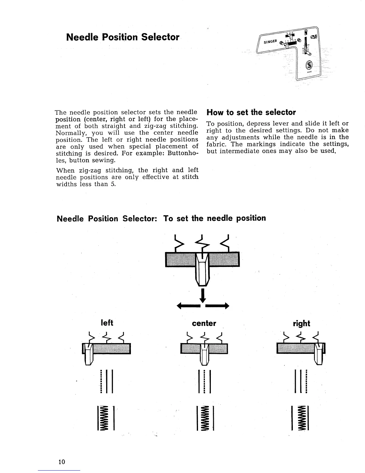 Singer 677 - Needle Position Selector; How to Set the Selector
