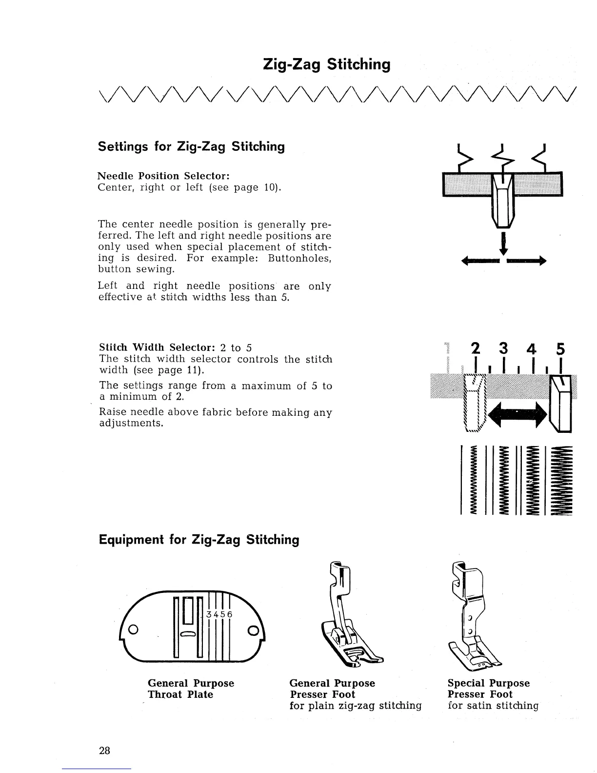 Singer 677 - Zig-Zag Stitching; Settings for Zig-Zag Stitching; Equipment for Zig-Zag Stitching