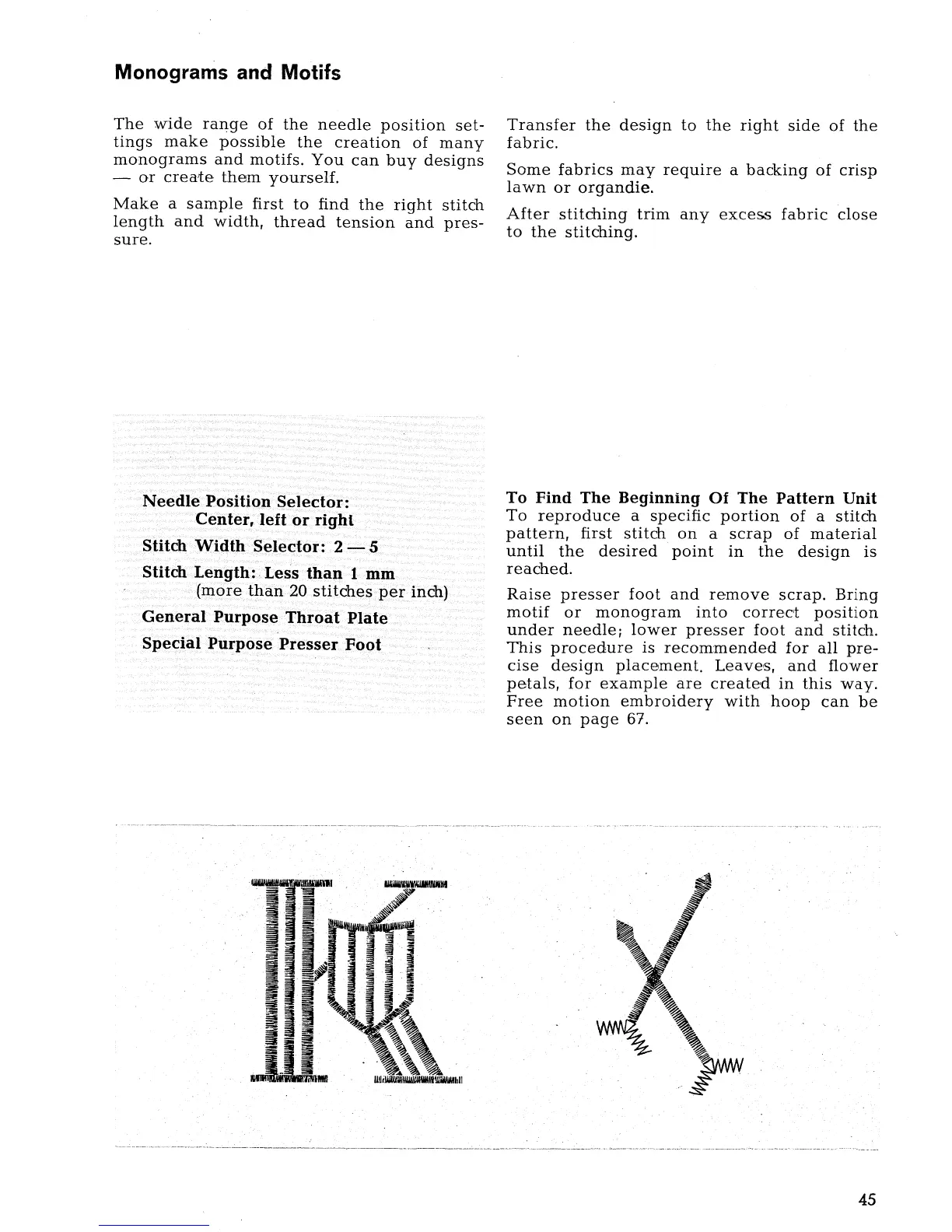Singer 677 - Monograms and Motifs; To Find the Beginning of the Pattern Unit