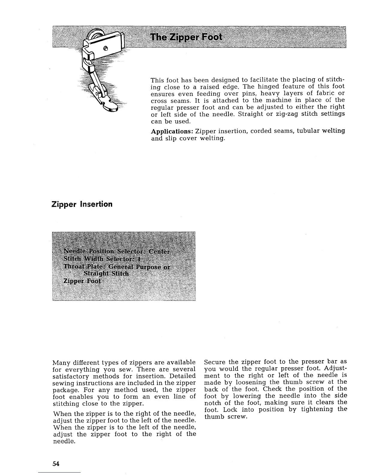Singer 677 - The Zipper Foot; Zipper Insertion
