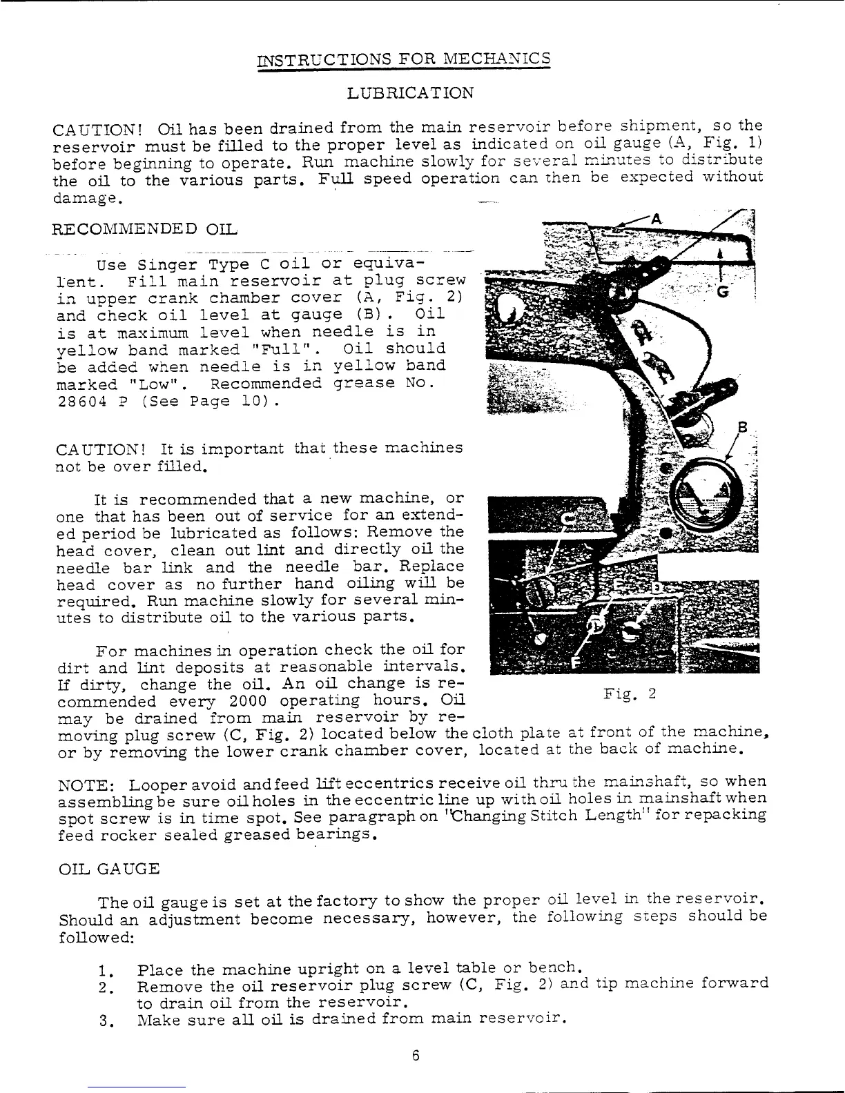 Singer 677B003 - INSTRUCTIONS FOR MECHANICS; LUBRICATION