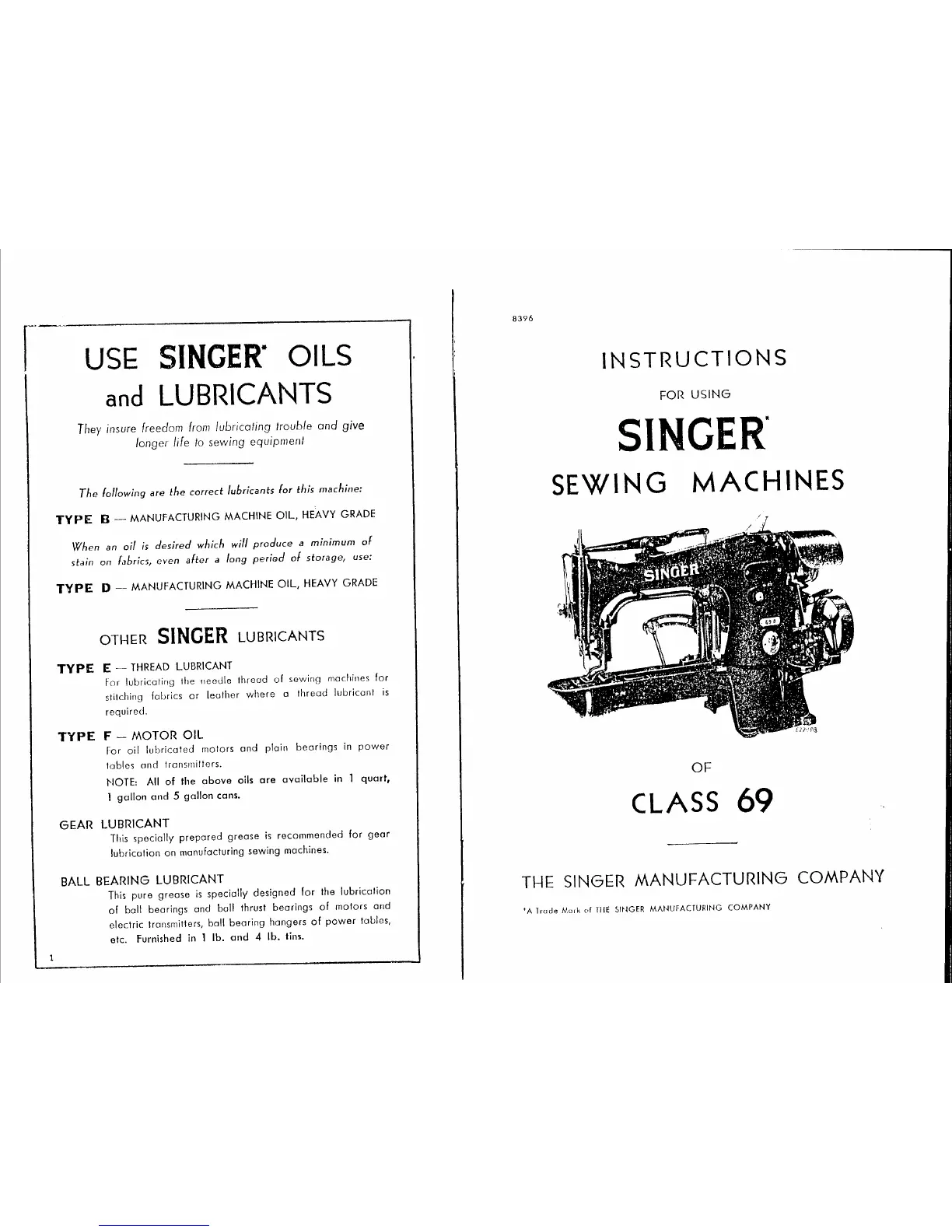 Singer 69 Series - Instructions for Using Singer Sewing Machines Class 69; Singer Oils and Lubricants