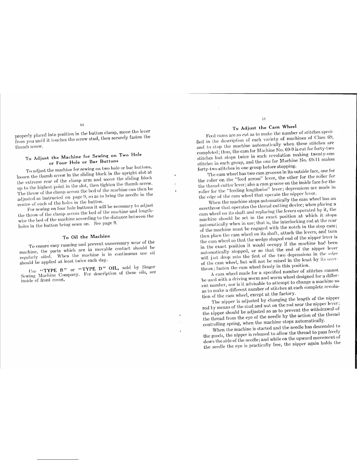 Singer 69 Series - Machine Maintenance and Cam Wheel Adjustment