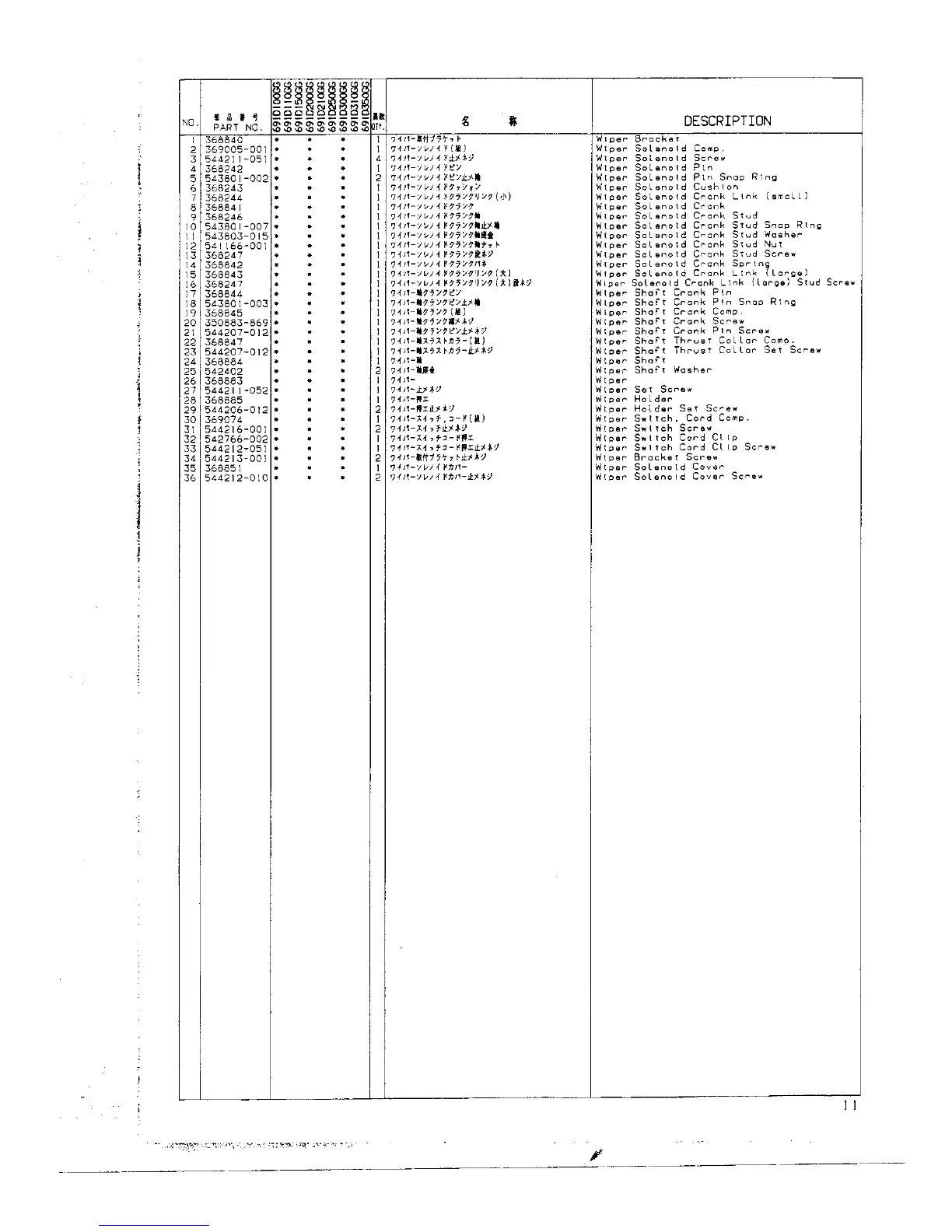 Singer 691 - Wiper Solenoid and Crank Components; Wiper Shaft and Bushing Components; Wiper Switch and Cord Components