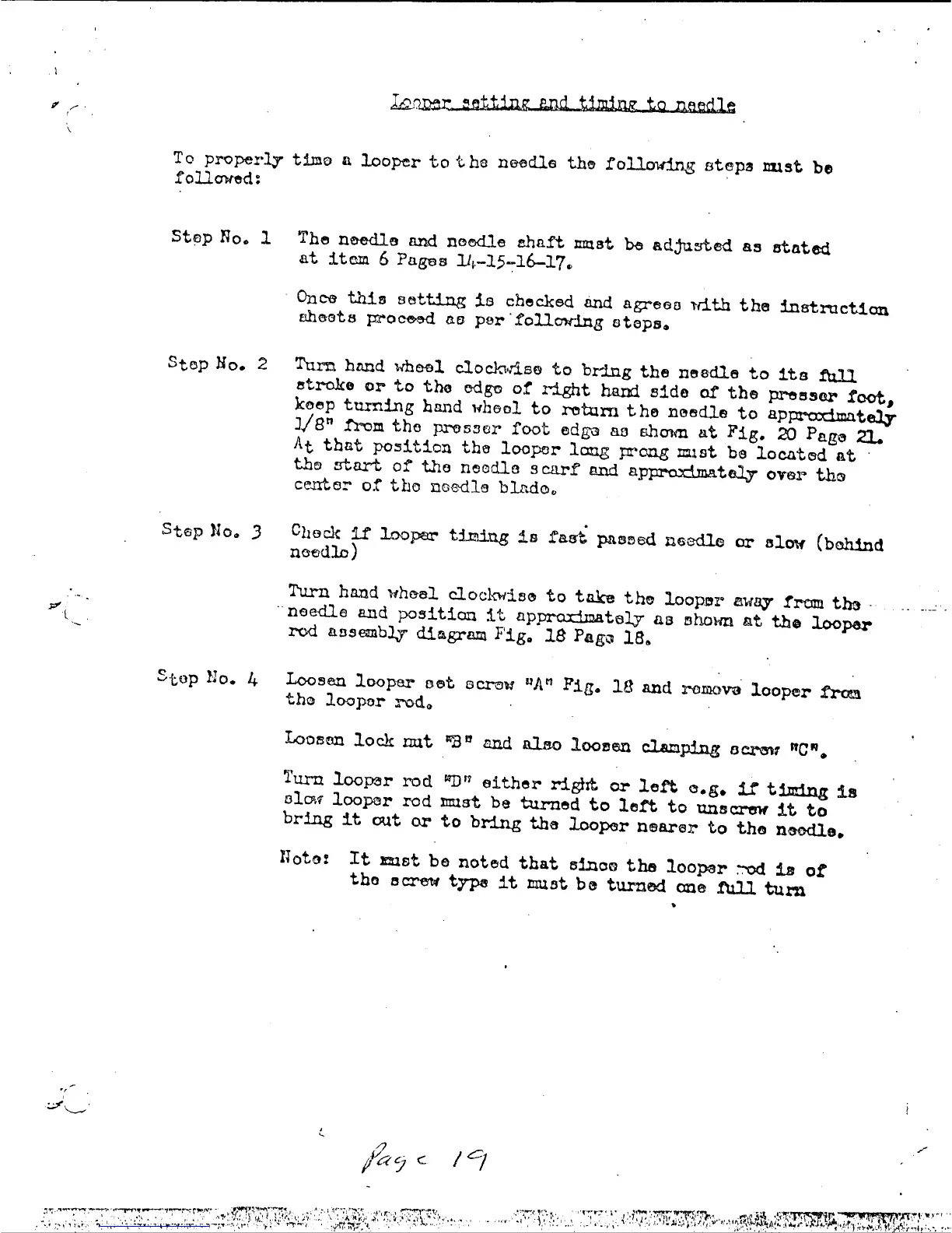 Singer 6SS - Looper Setting and Timing to Needle