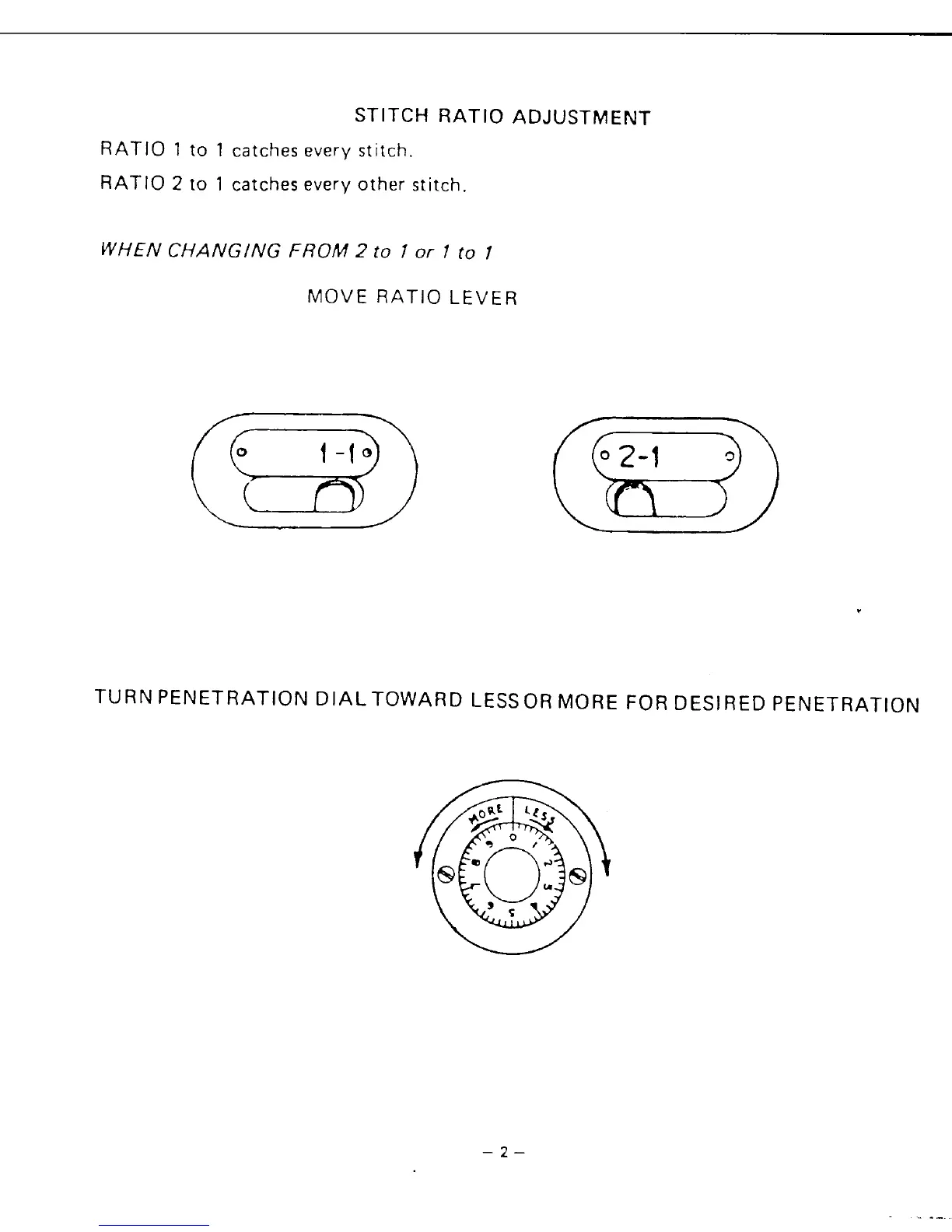 Singer 6SS - Stitch Ratio and Penetration Adjustment; Stitch Ratio Settings; Penetration Dial Adjustment