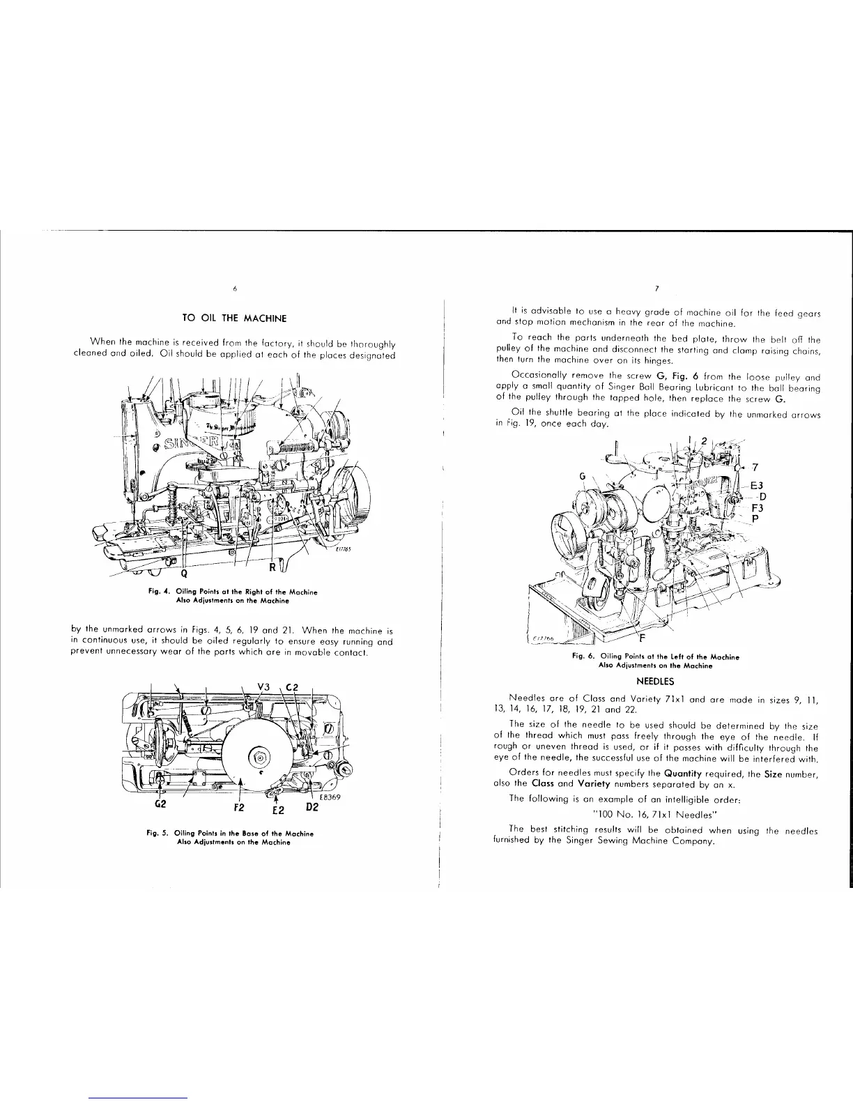 Singer 70-105 - Machine Maintenance and Lubrication; Oiling Points and Procedures; Needle Selection and Usage