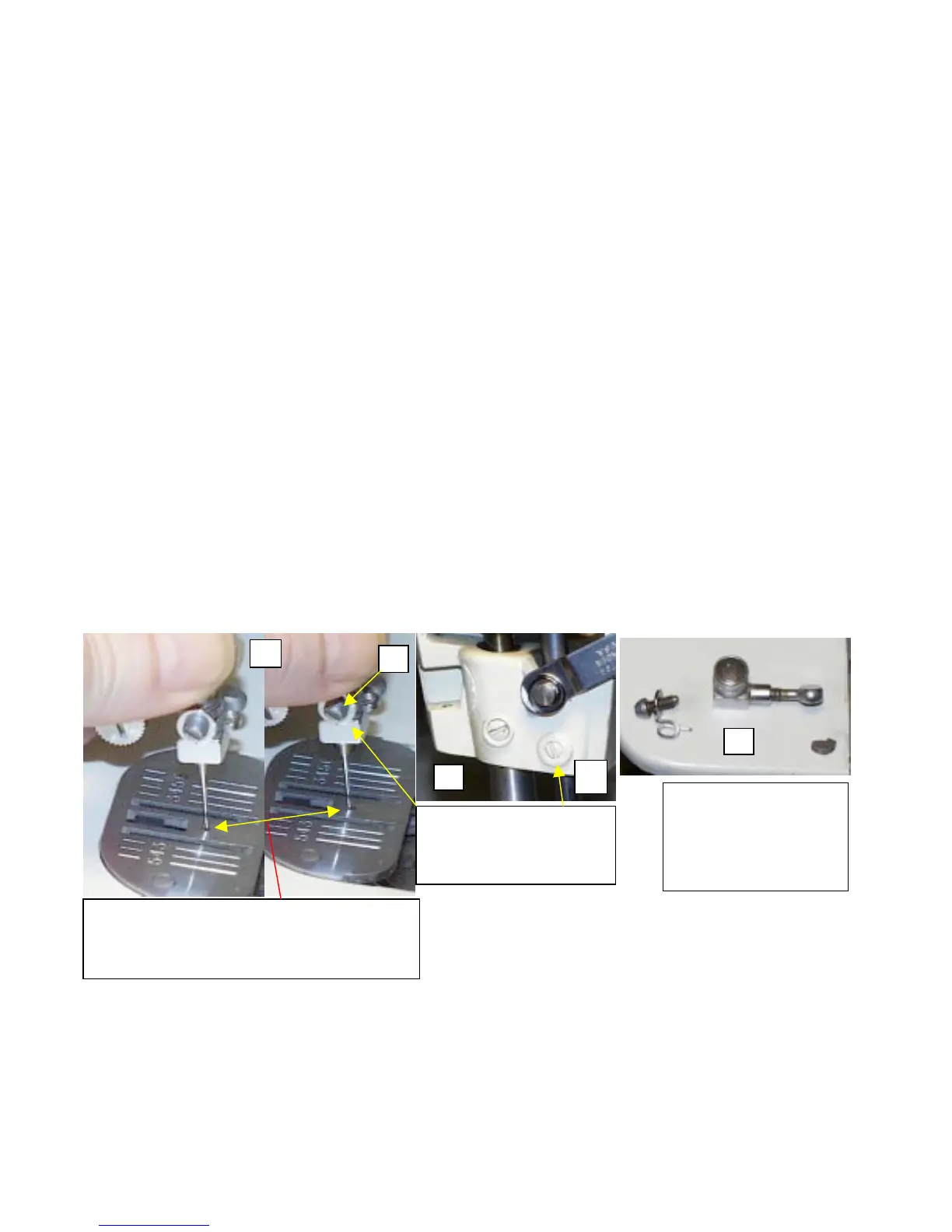 2. Before we start the adjustments, lets check our Needle Bar Bushings for free play. See picture (1). Gently grasp the