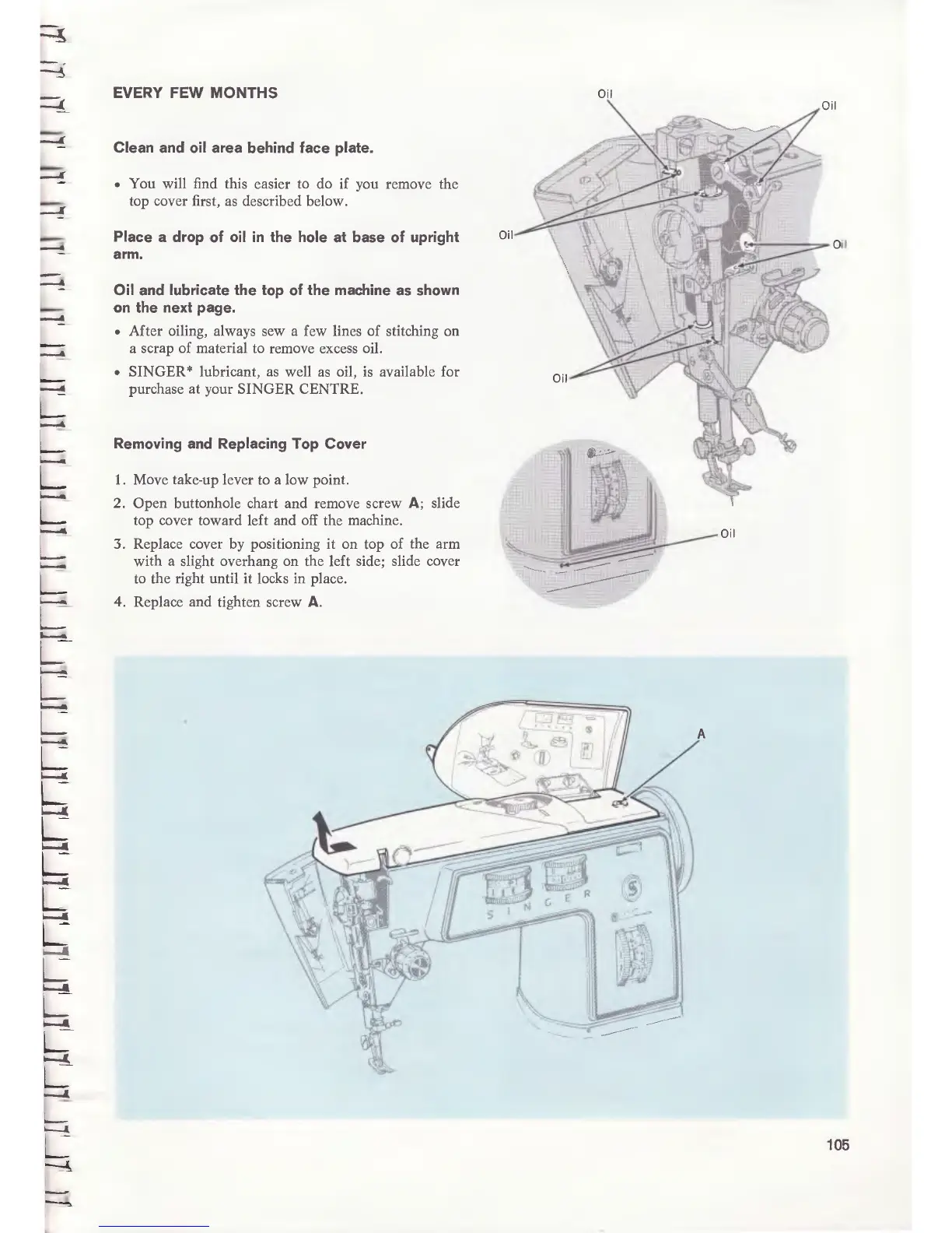 Singer 700 - Every few Months; Clean and Oil Area Behind Face Plate; Removing and Replacing Top Cover
