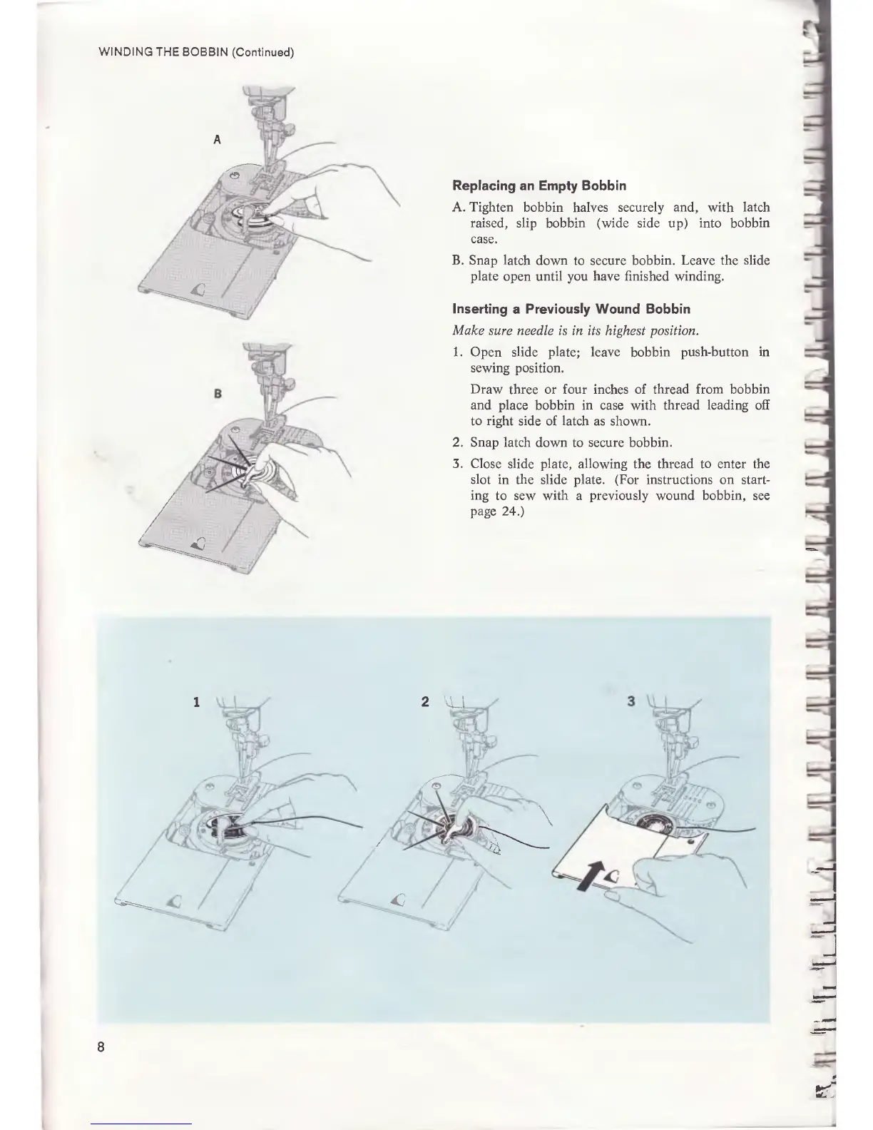 Singer 700 - Replacing an Empty Bobbin; Inserting a Previously Wound Bobbin