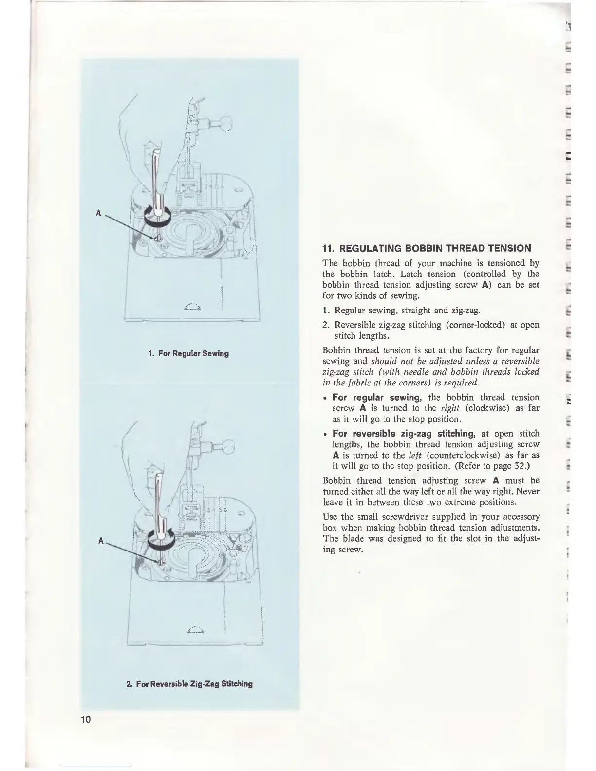 Singer 700 - Regulating Bobbin Thread Tension; For Regular Sewing; For Reversible Zig-Zag Stitching
