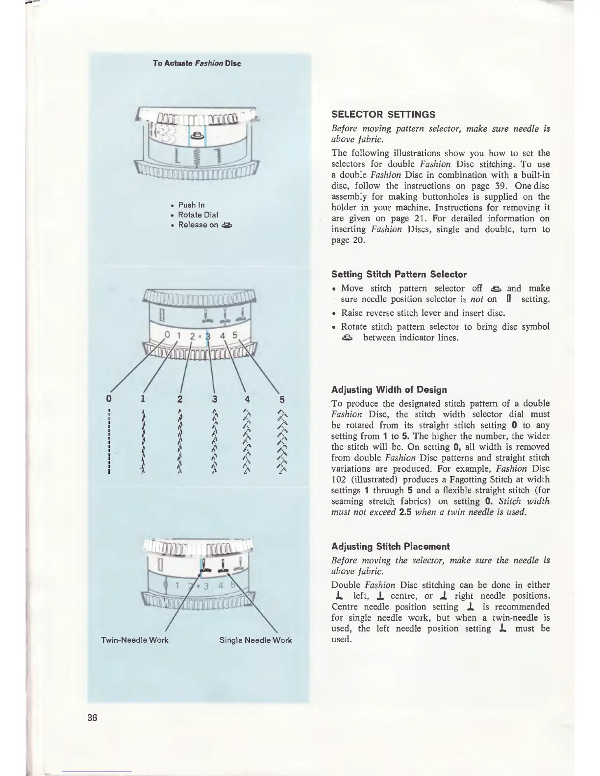 Singer 700 - To Actuate Fashion Disc; Selector Setting