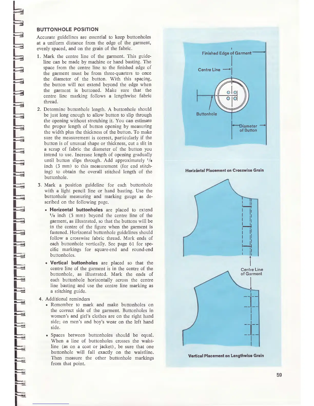 Singer 700 - Buttonhole Position; Horizontal Placement on Crosswise Grain; Vertical Placement on Lengthwise Grain
