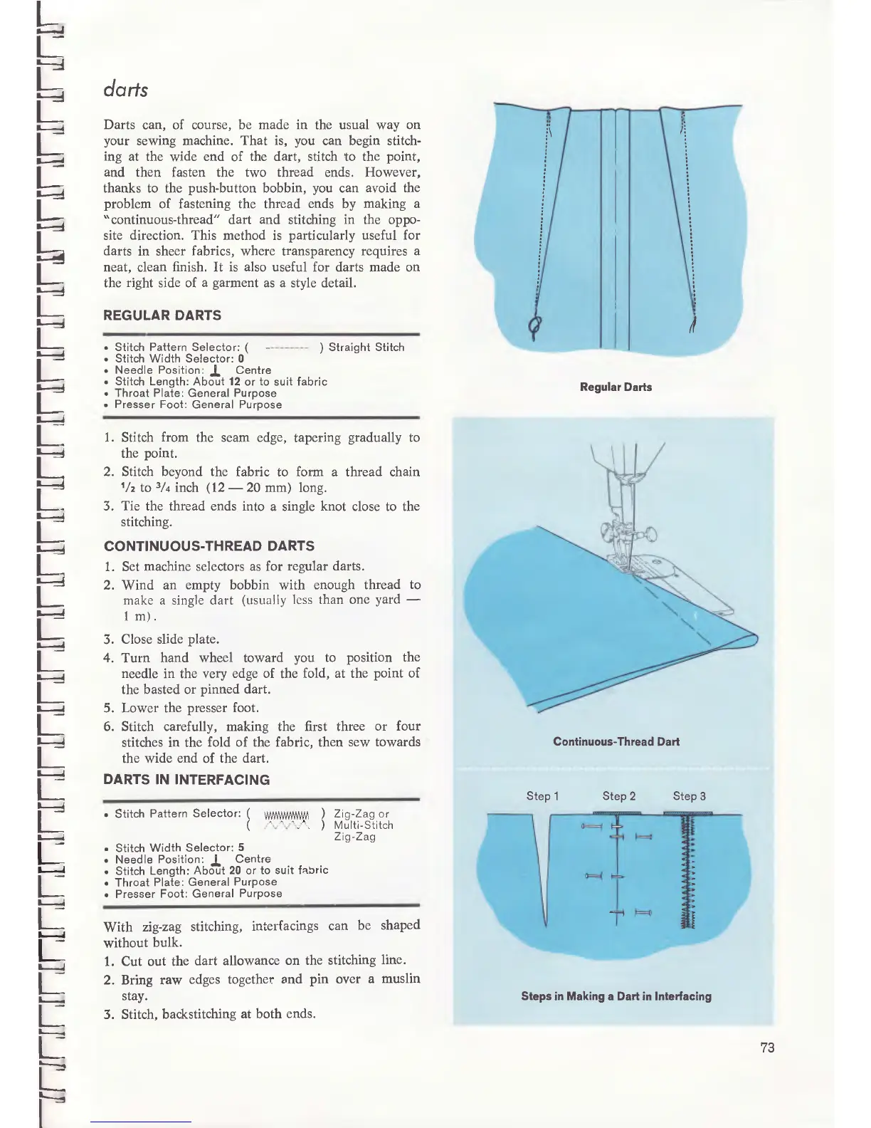 Singer 700 - Regular Darts; Continuous-Thread Darts; Steps in Making a Dart in Interfacing