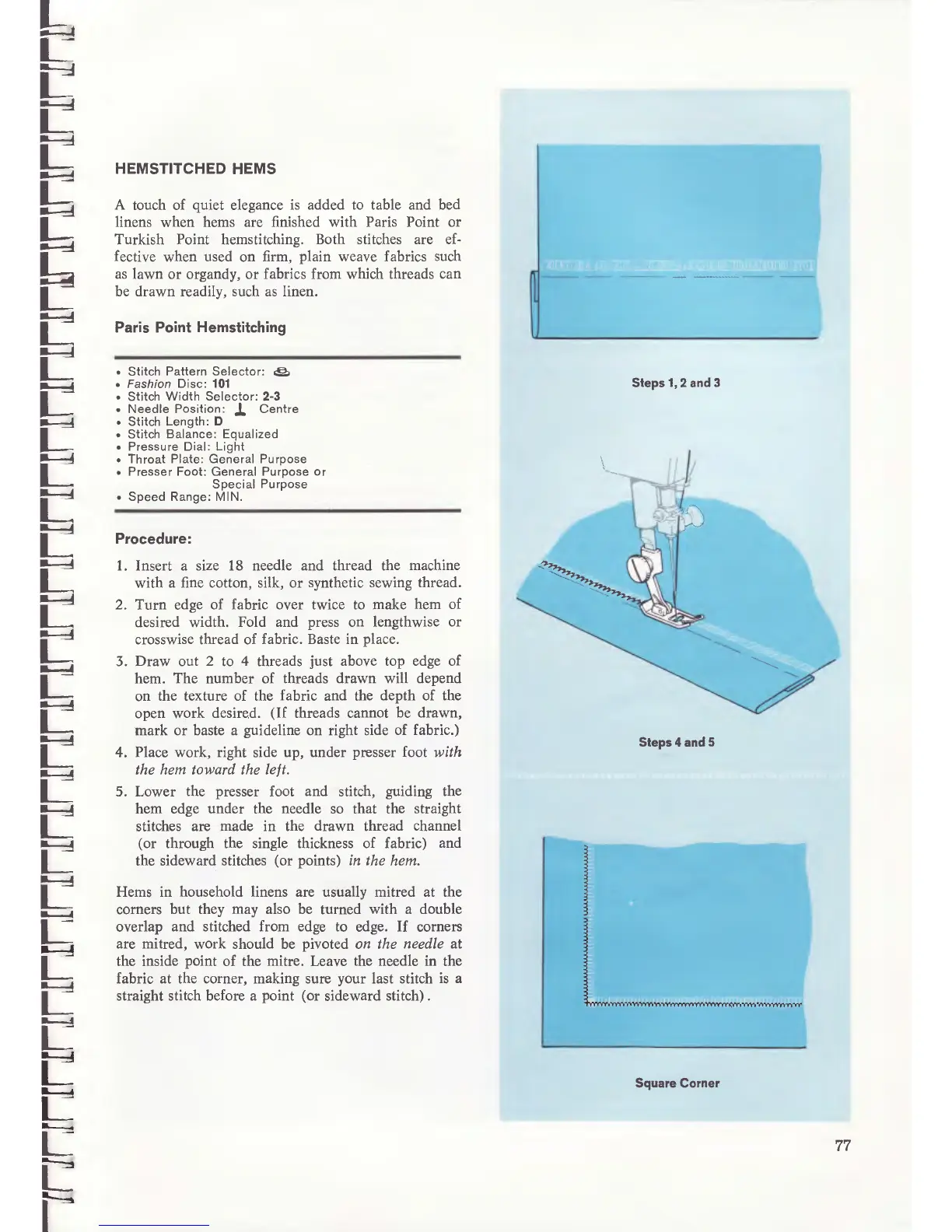 Singer 700 - Hemstitched Hems; Paris Point Hemstitching