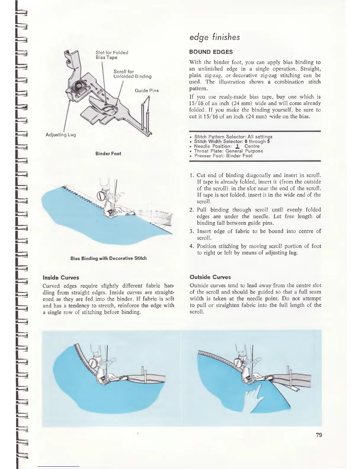 Singer 700 - Edge Finishes; Bound Edges; Inside Curves; Outside Curves