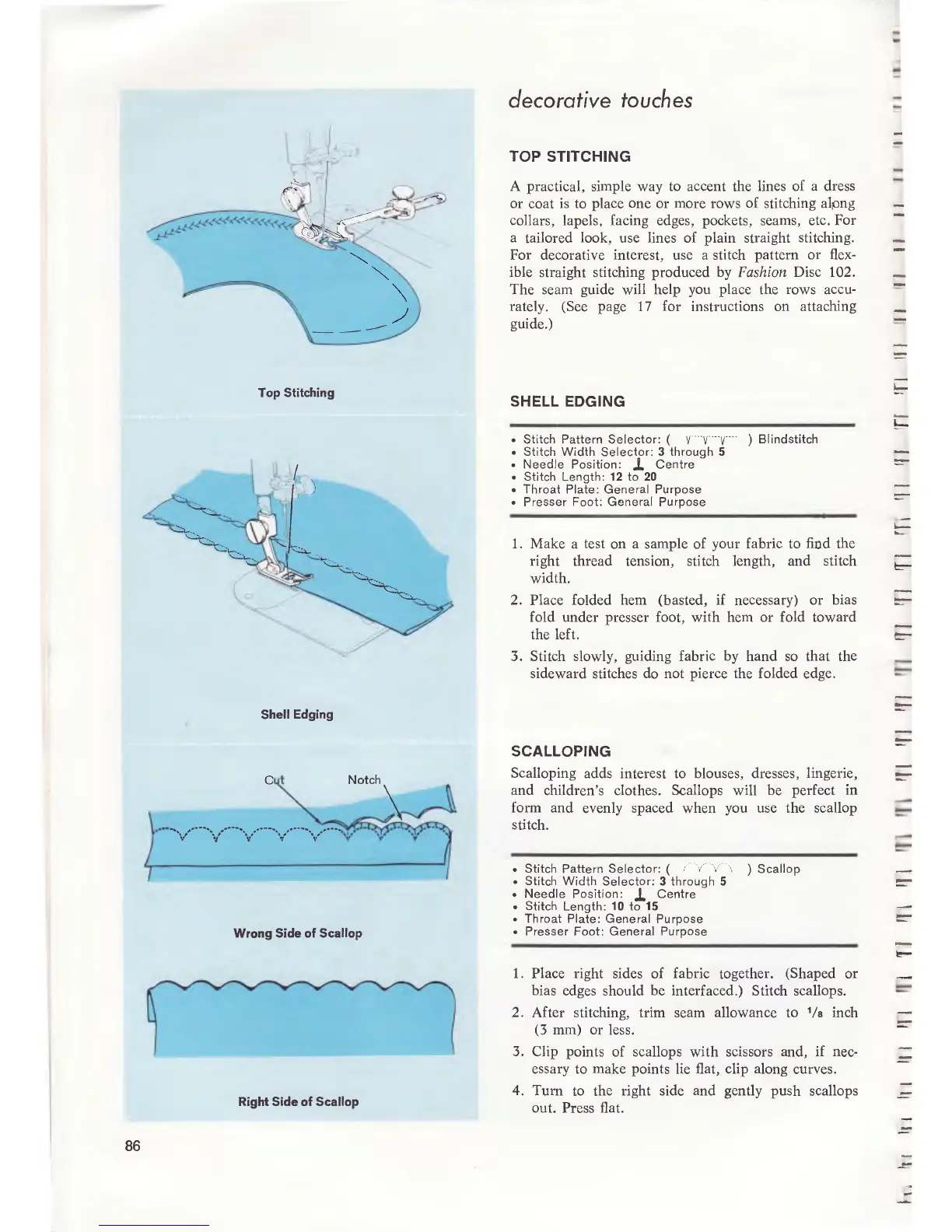 Singer 700 - Decorative Touches; Top Stitching; Shell Edging; Scalloping