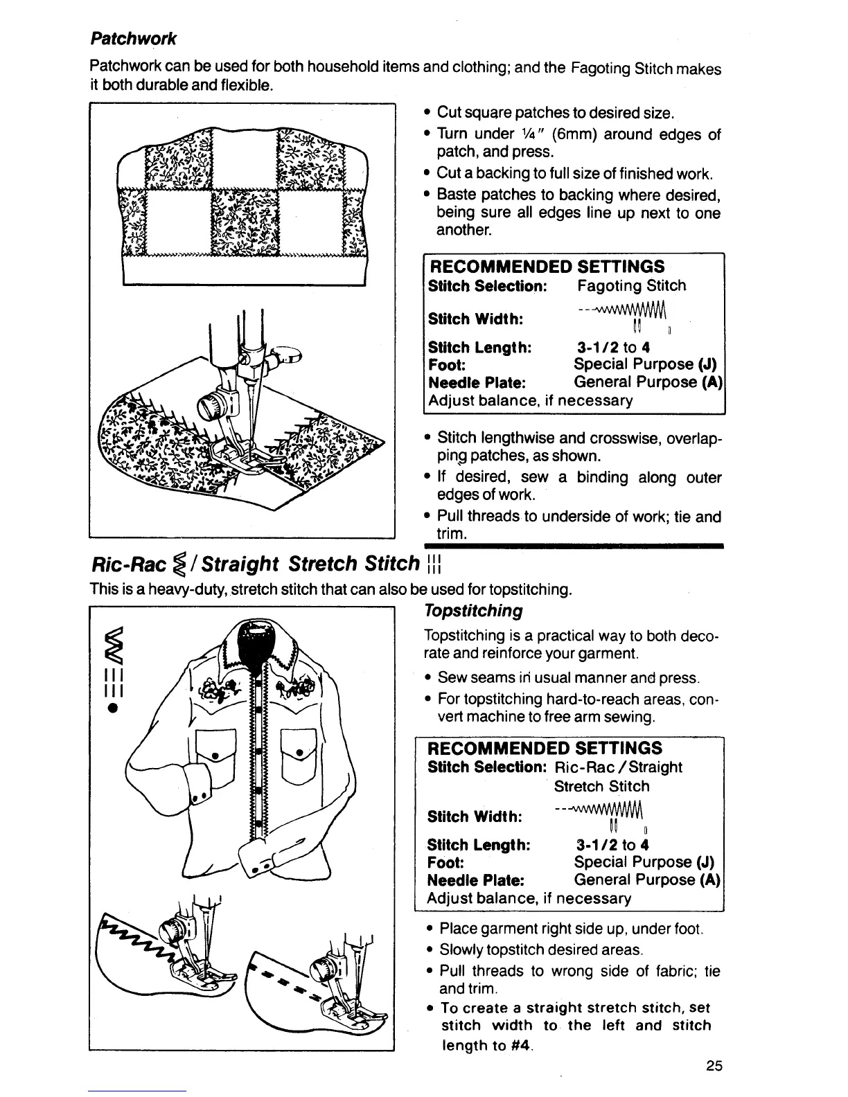 Singer 7004 - Patchwork; Ric-Rac;Straight Stretch Stitch; Topstitching