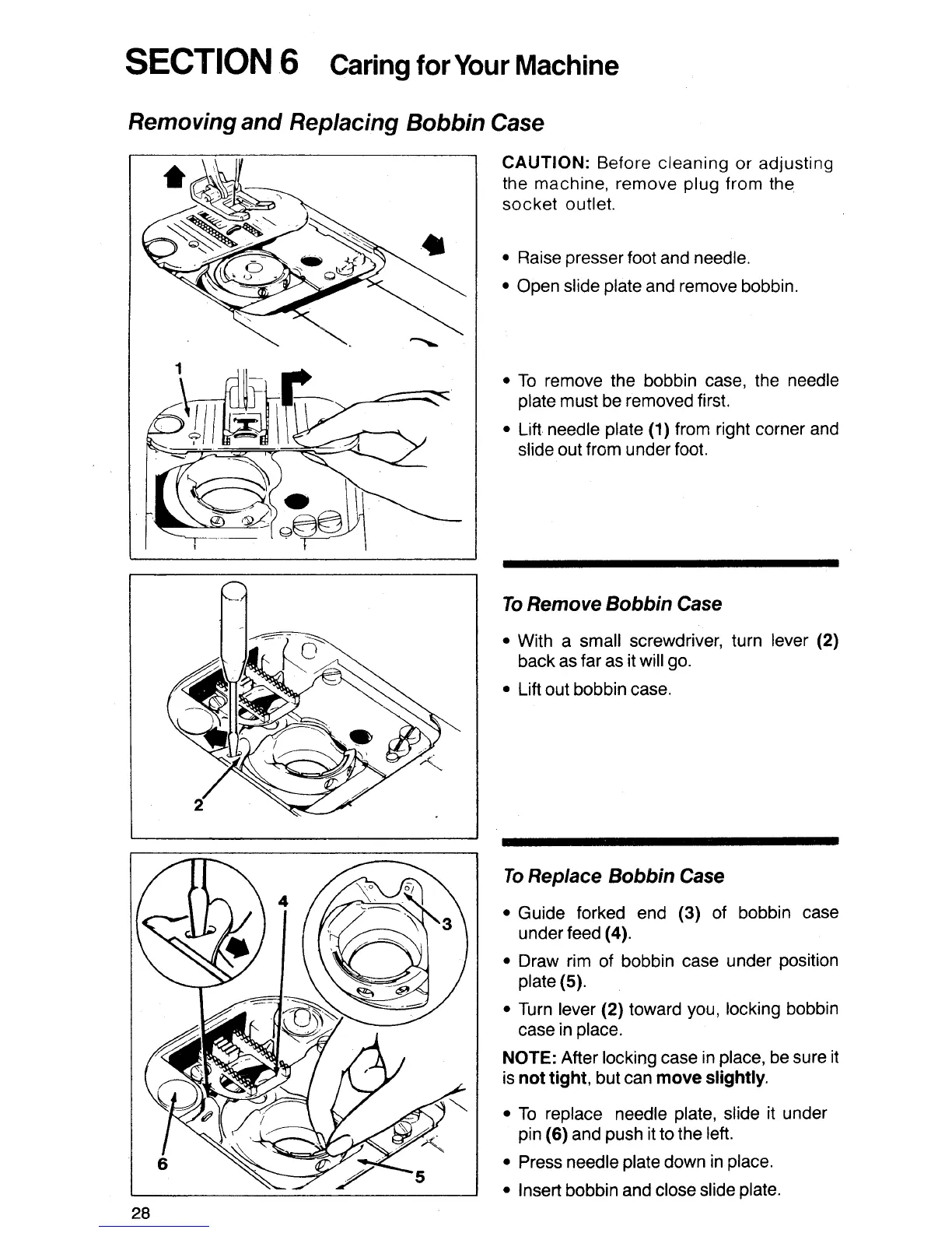 Singer 7004 - SECTION 6 Caring for Your Machine; Bobbin Case Maintenance
