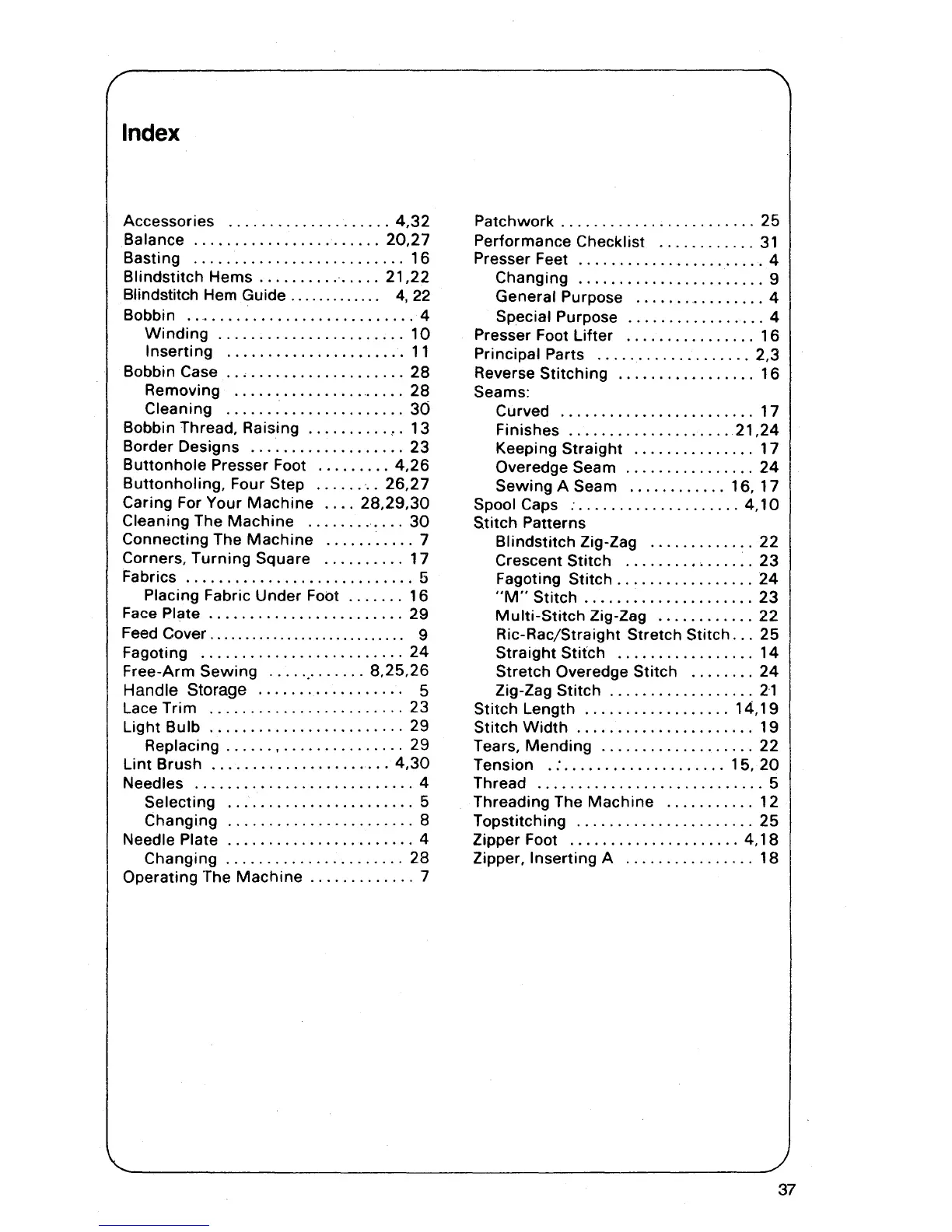 Singer 7004 - Index