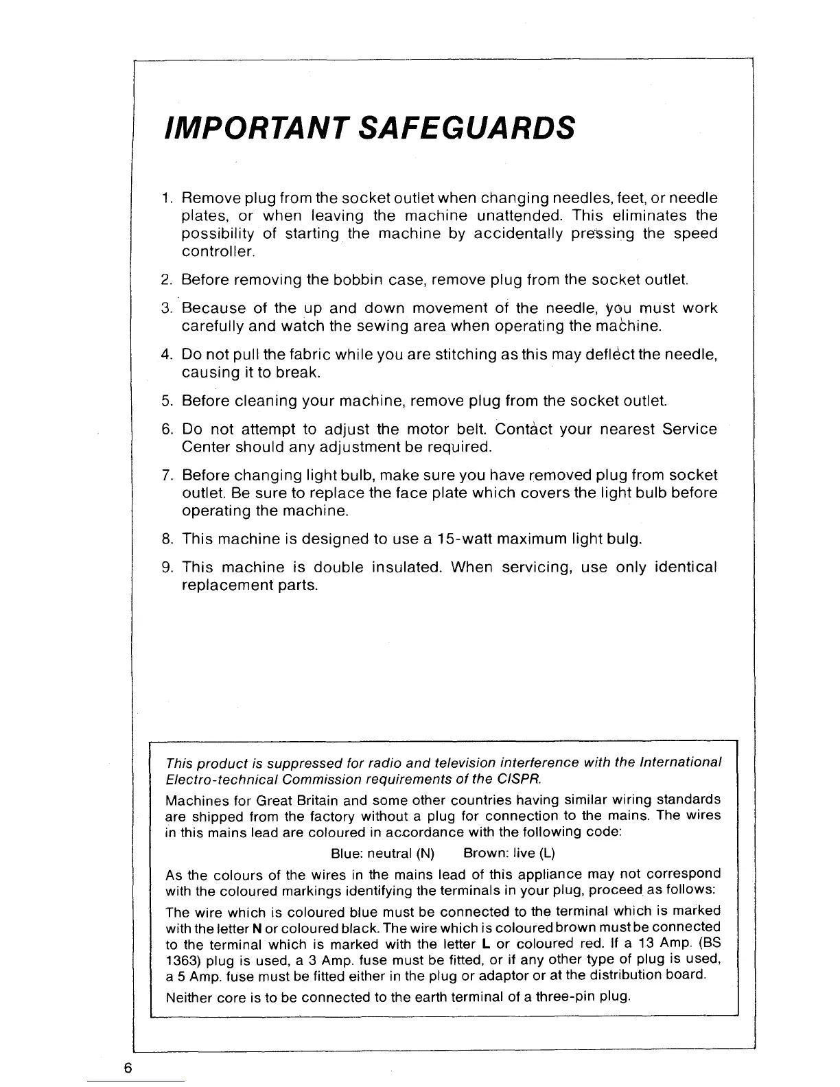 Singer 7004 - IMPORTANT SAFEGUARDS