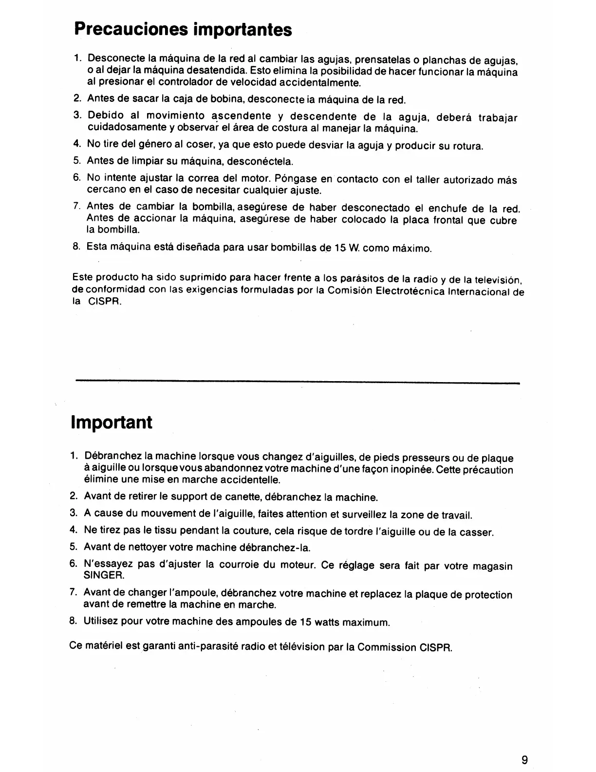 Singer 7011 - Important Safeguards