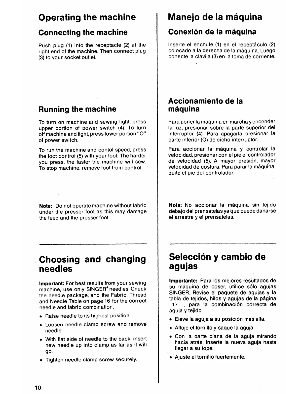 Singer 7011 - Operating the Machine; Connecting the Machine; Running the Machine; Choosing and Changing Needles