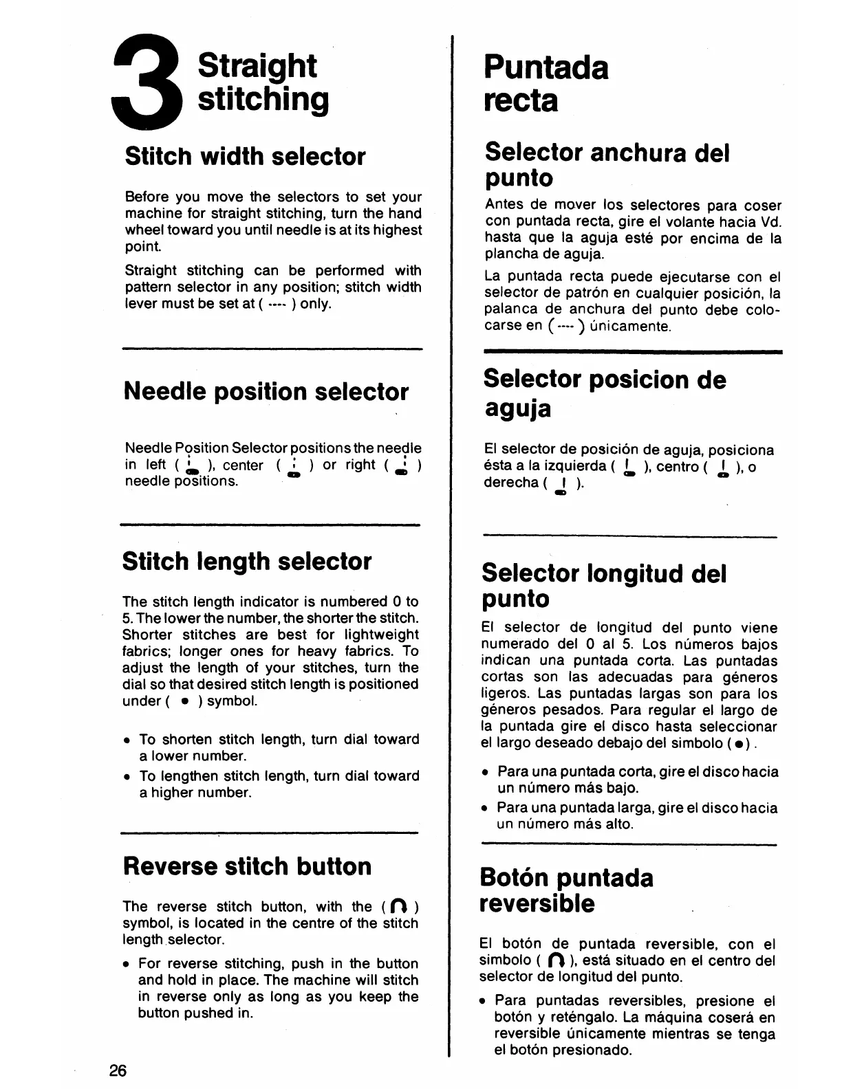 Singer 7011 - Straight Stitching; Stitch Length Selector; Reverse Stitch Button