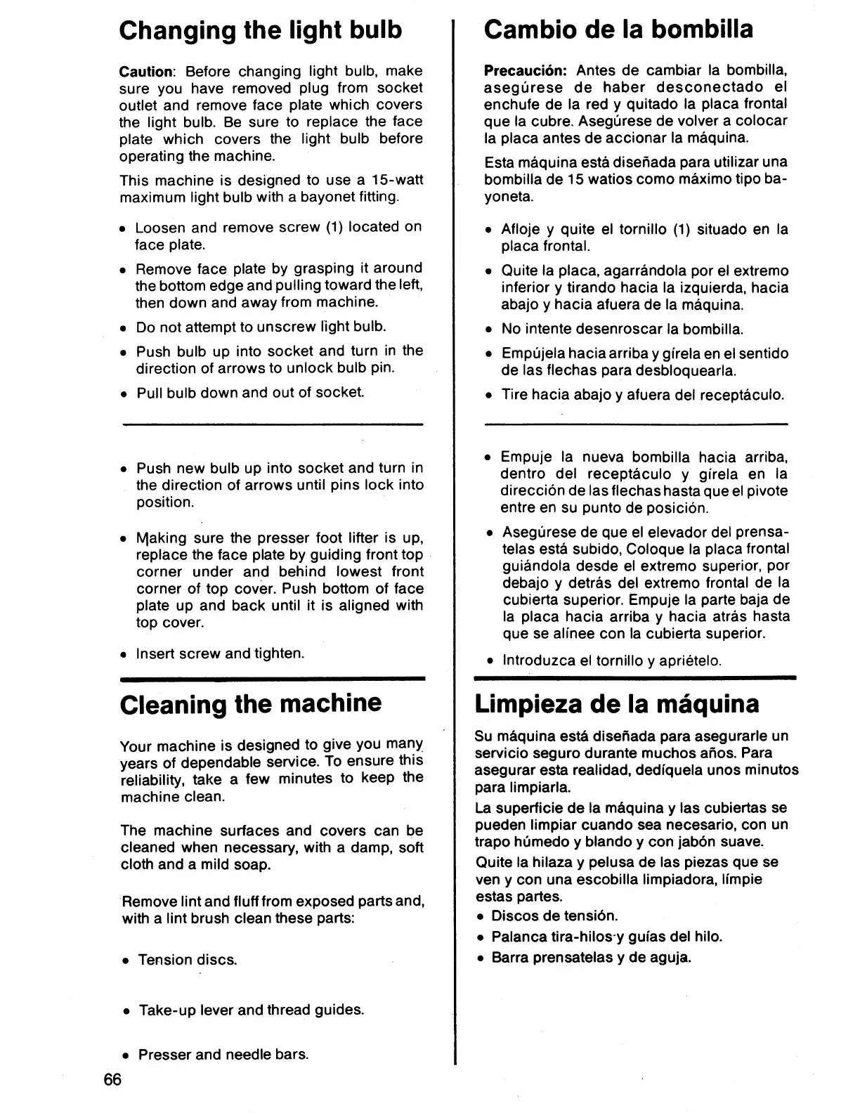 Singer 7011 - Machine Maintenance; Changing the Light Bulb; Cleaning the Machine
