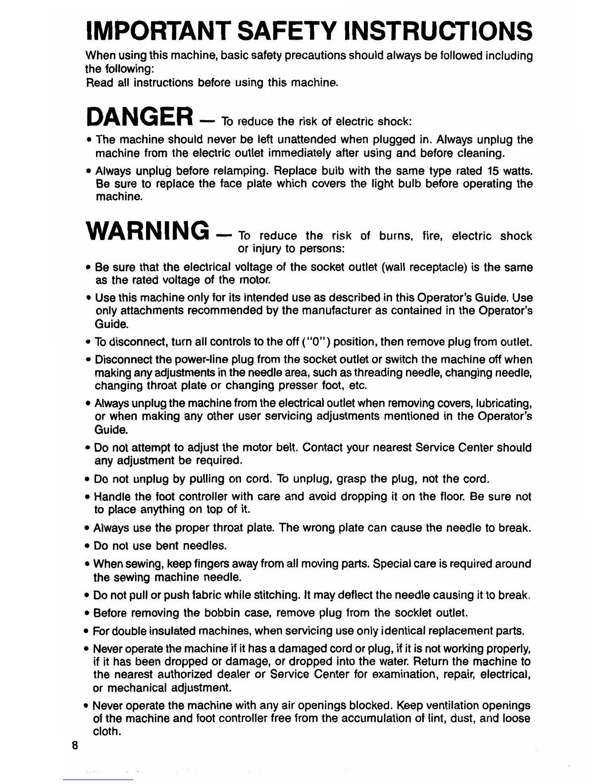 Singer 7021 - IMPORTANT SAFETY INSTRUCTIONS