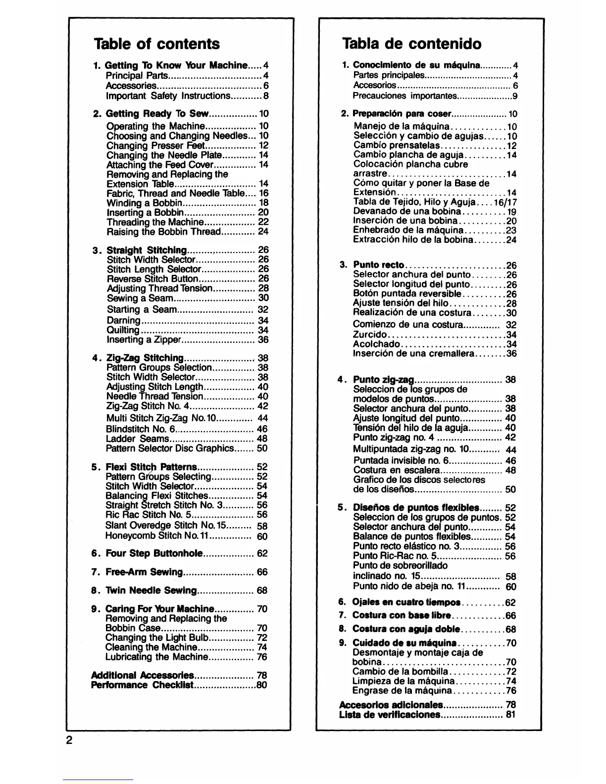 Singer 7021 - Table of Contents