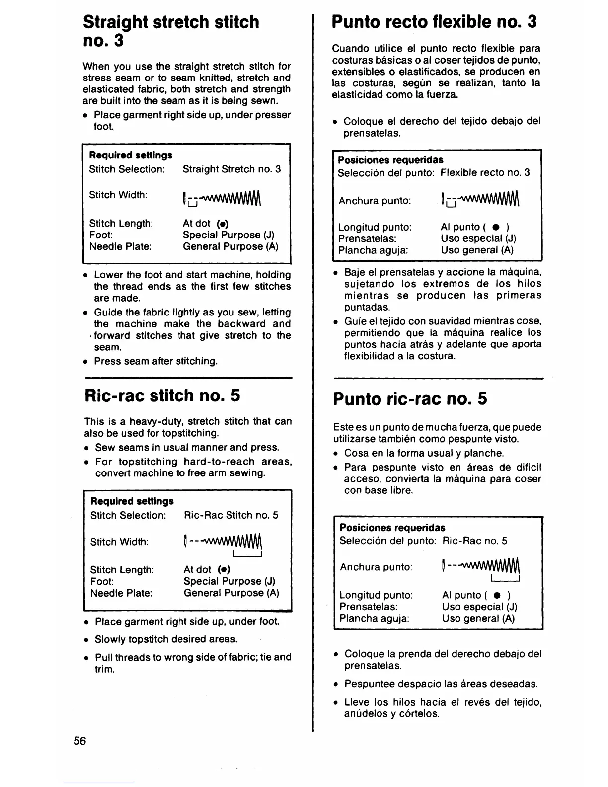 Singer 7021 - Straight Stretch Stitch No. 3; Ric-Rac Stitch No. 5