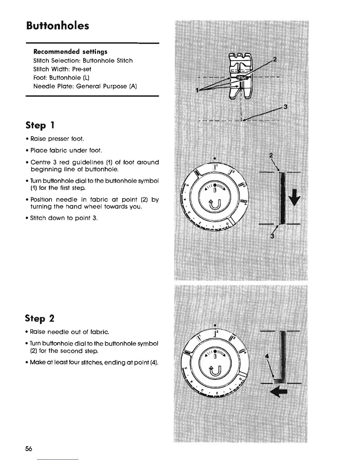 Singer 7025 - Buttonholes; Step 1; Step 2