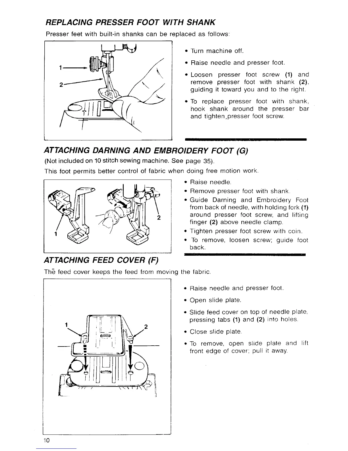 Singer 7033 - Replacing Presser Foot with Shank; Attaching Darning and Embroidery Foot; Attaching Feed Cover