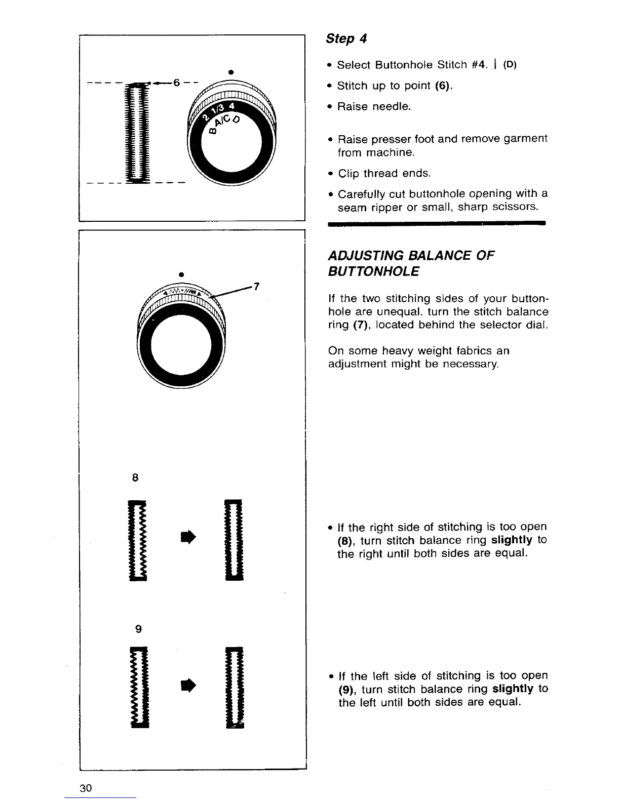 Singer 7033 - Step 4: Complete Buttonhole; Adjusting Balance of Buttonhole