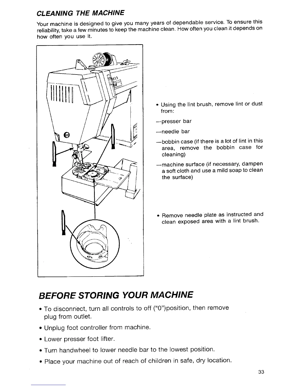 Singer 7033 - Cleaning the Machine; Before Storing Your Machine