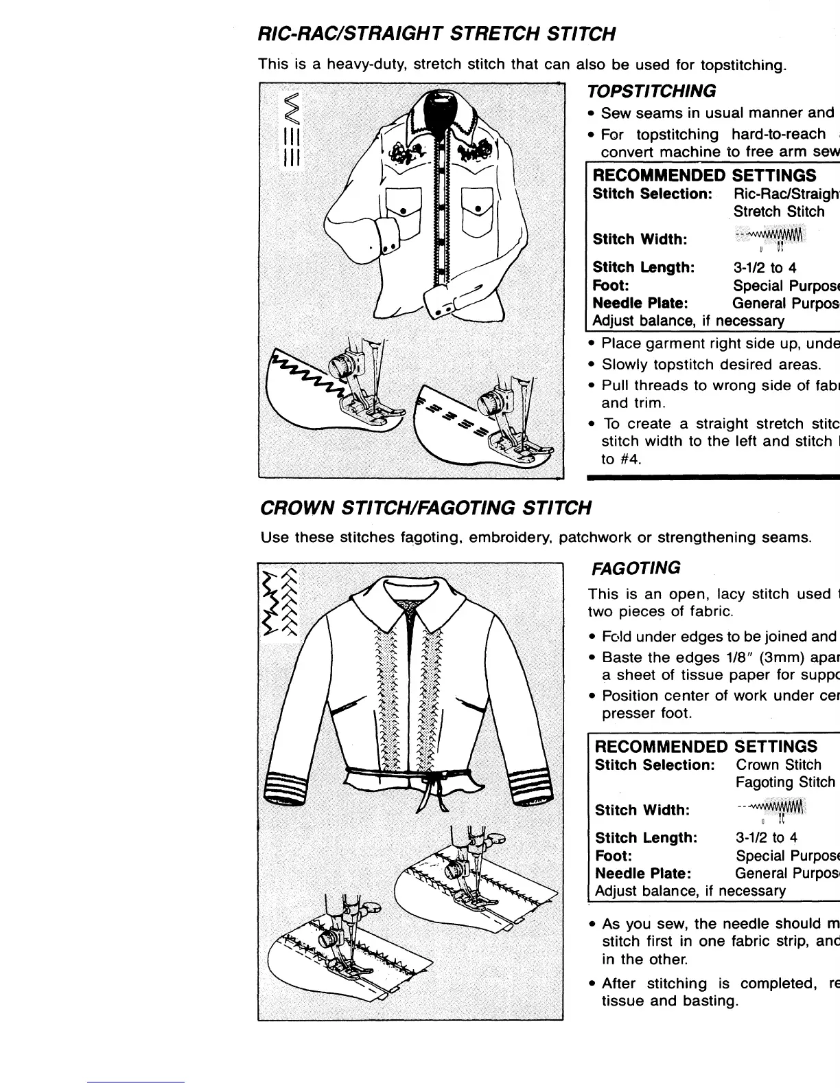 Singer 7050 - RIC-RAC;STRAIGHT STRETCH STITCH; CROWN STITCH;FAGOTING STITCH