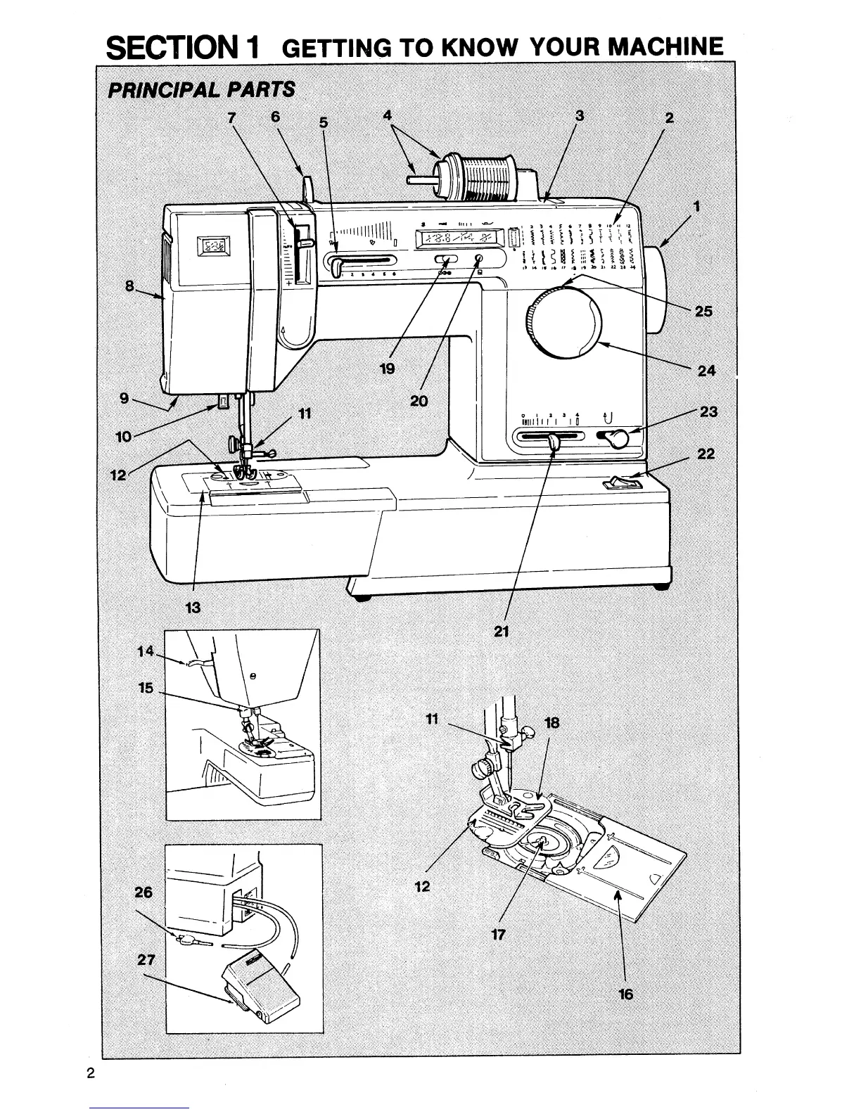 Singer 7050 - SECTION 1 GETTING TO KNOW YOUR MACHINE; PRINCIPAL PARTS
