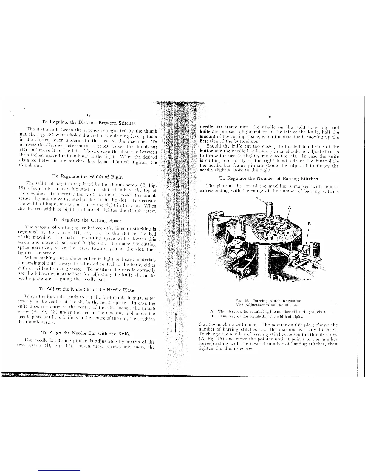 Singer 71-30 - To Regulate the Distance between Stitches; To Regulate the Width of Bight; To Adjust the Knife Slit in the Needle Plate; To Regulate the Number of Barring Stitches